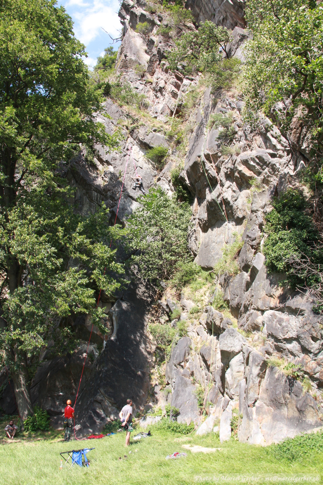 En tout et pour tout, l'endroit est joli est sympathique. Toutes les voies que nous avons pratiquées finissent sur des crochets. Un des ouvreurs nous a expliqué que c'est dû au changement de population type de grimpeurs qui viennent plutôt des salles et ont moins l'habitude des manipulations. Je recommande une visite. N'y allez pas en groupes trop nombreux, car le nombre de voies se limite à 38.