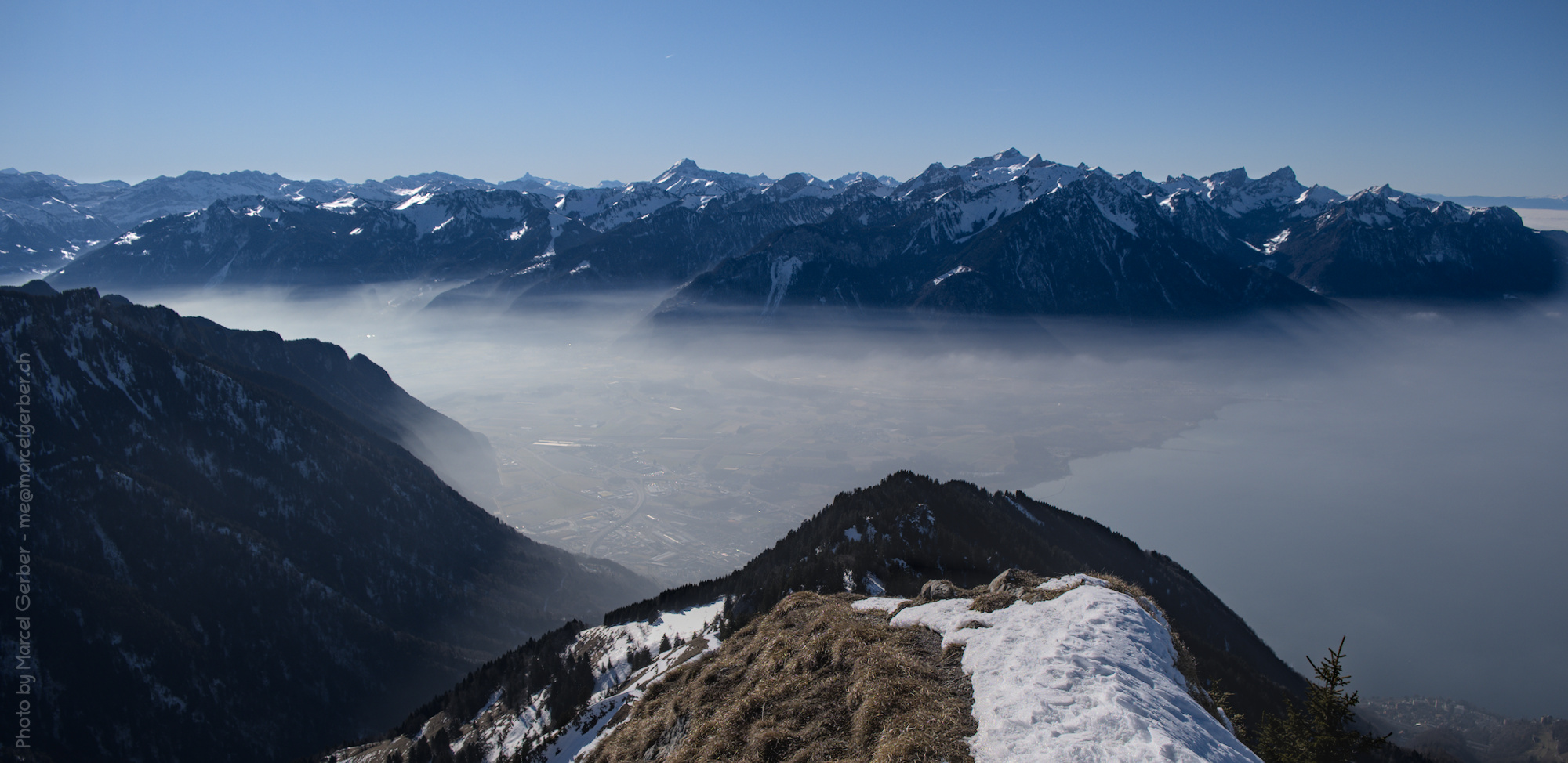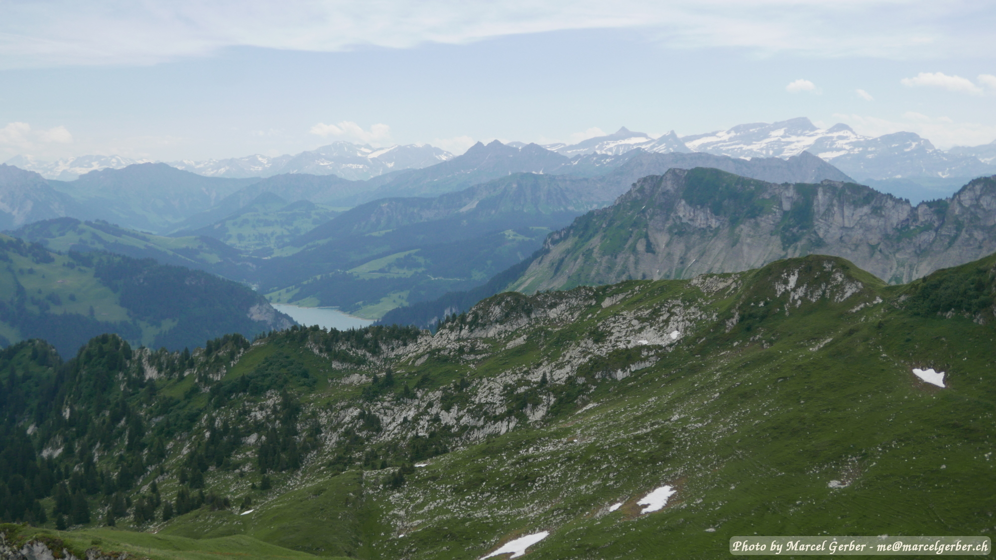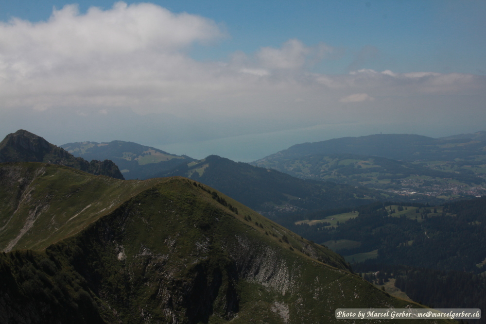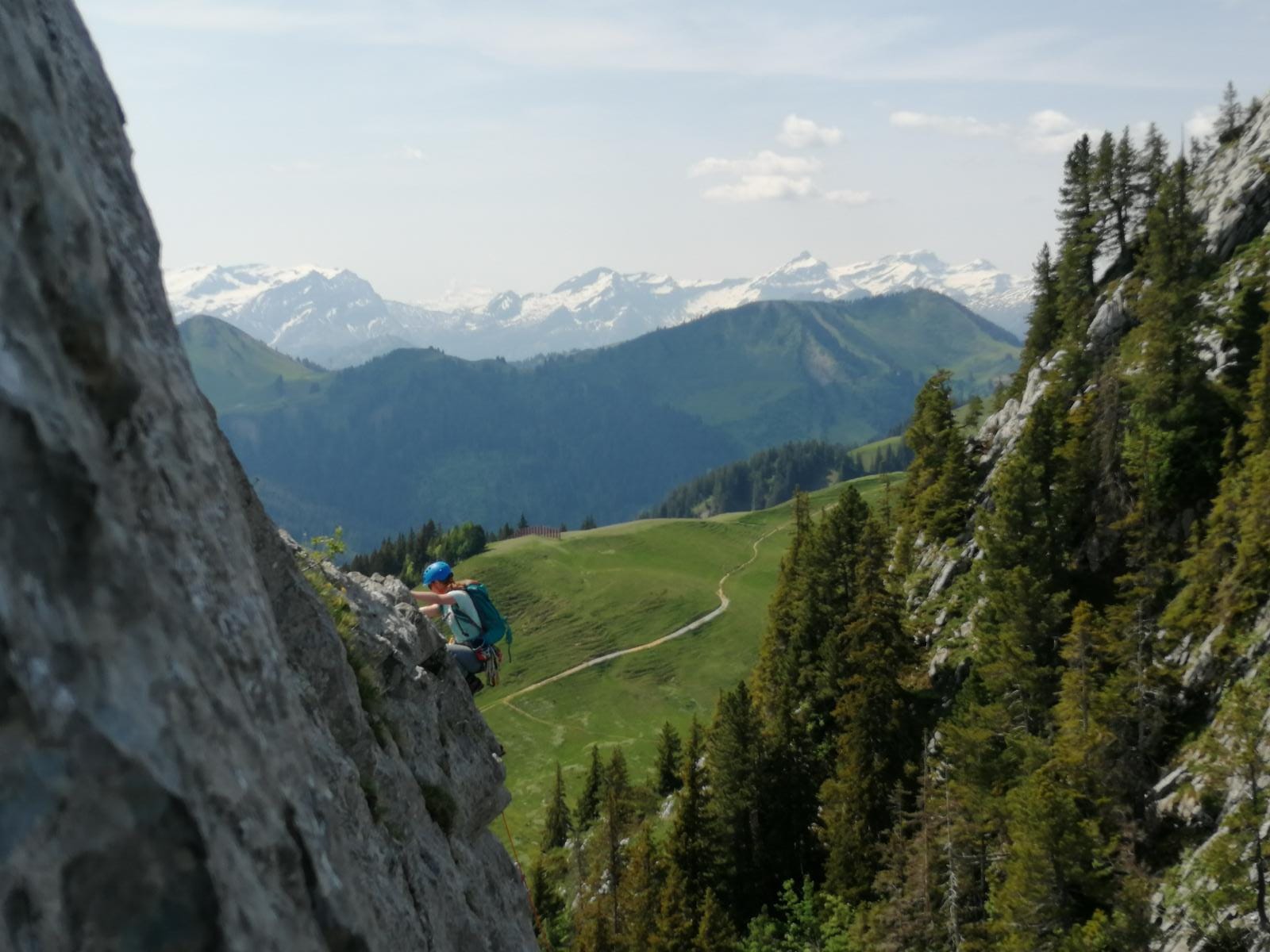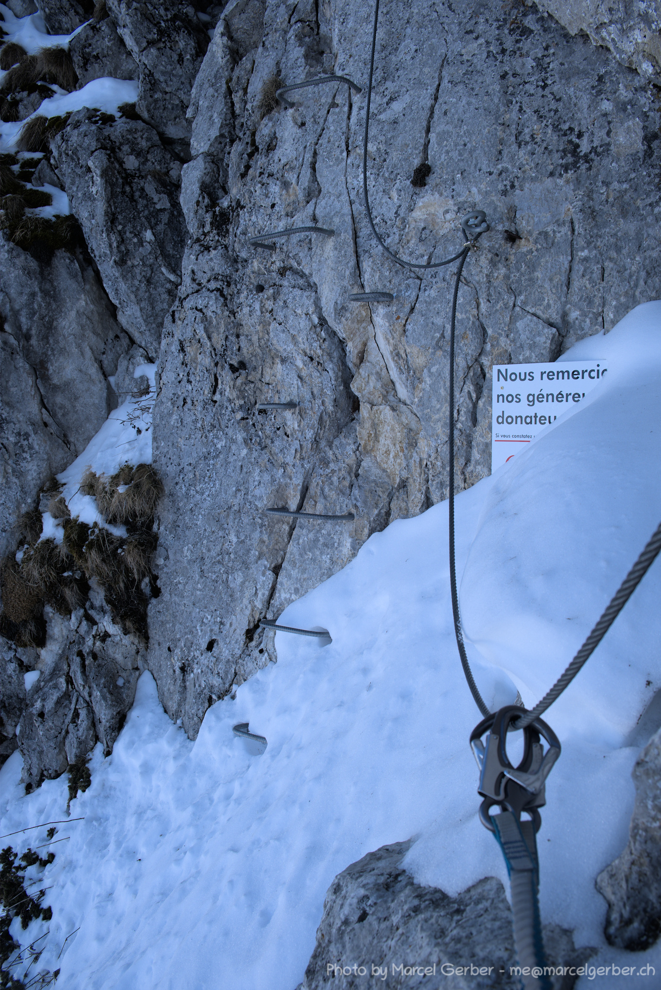 Dès les premiers mètres, la vue est splendide. La vie continue dans la falaise, face au lac et avec la Dent de Jaman en premier plan. Des images magnifiques vous resteront en mémoire si vous avez oublié votre appareil photo (rassurez-vous, ce n'est pas arrivé cette fois).
