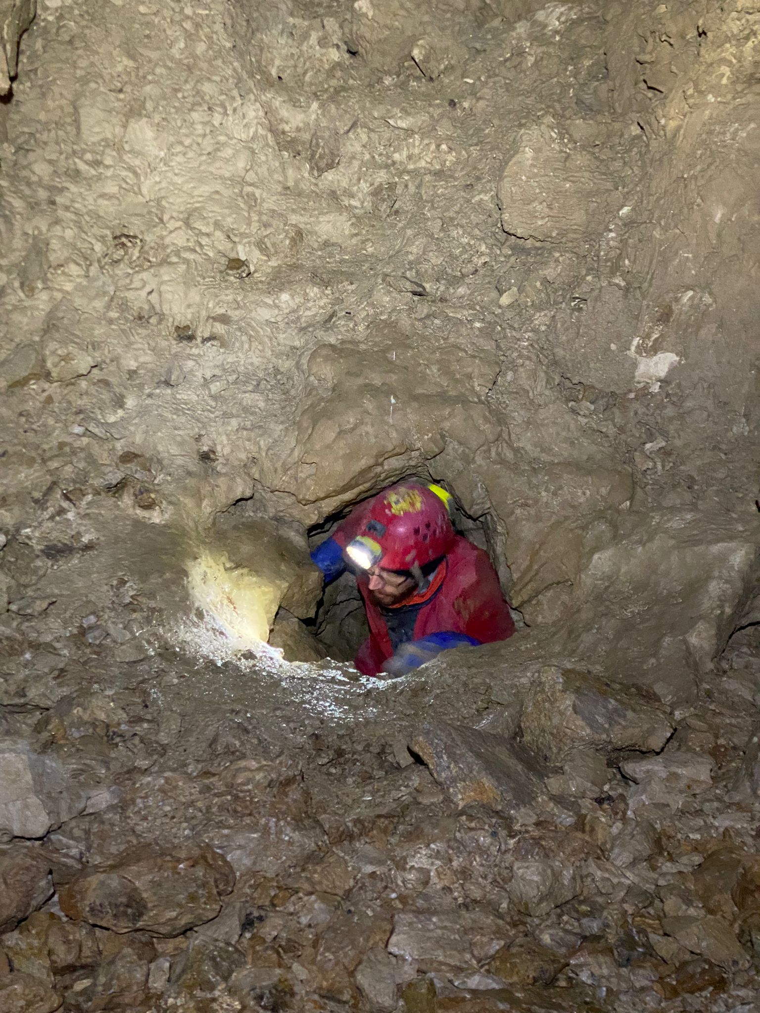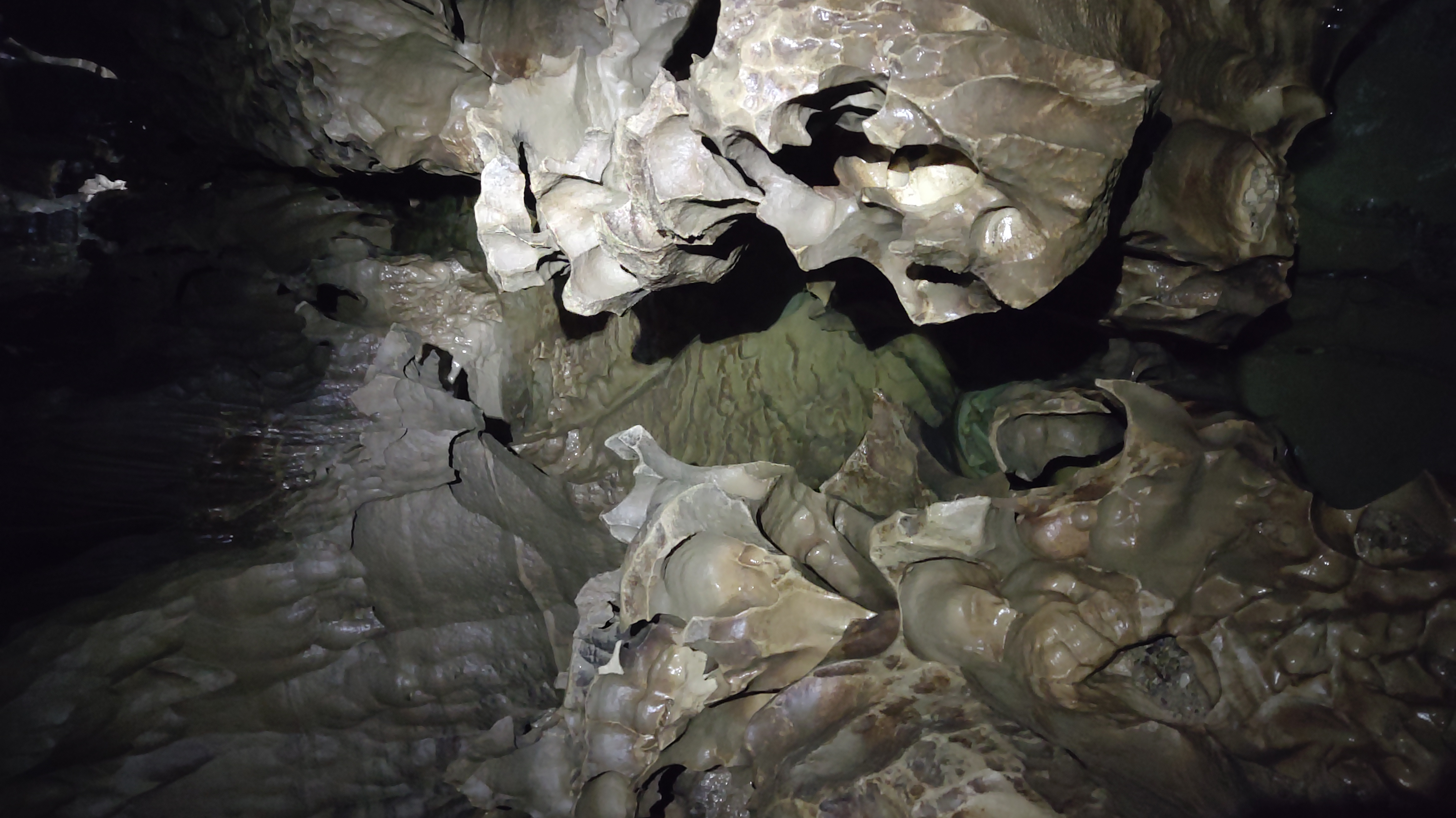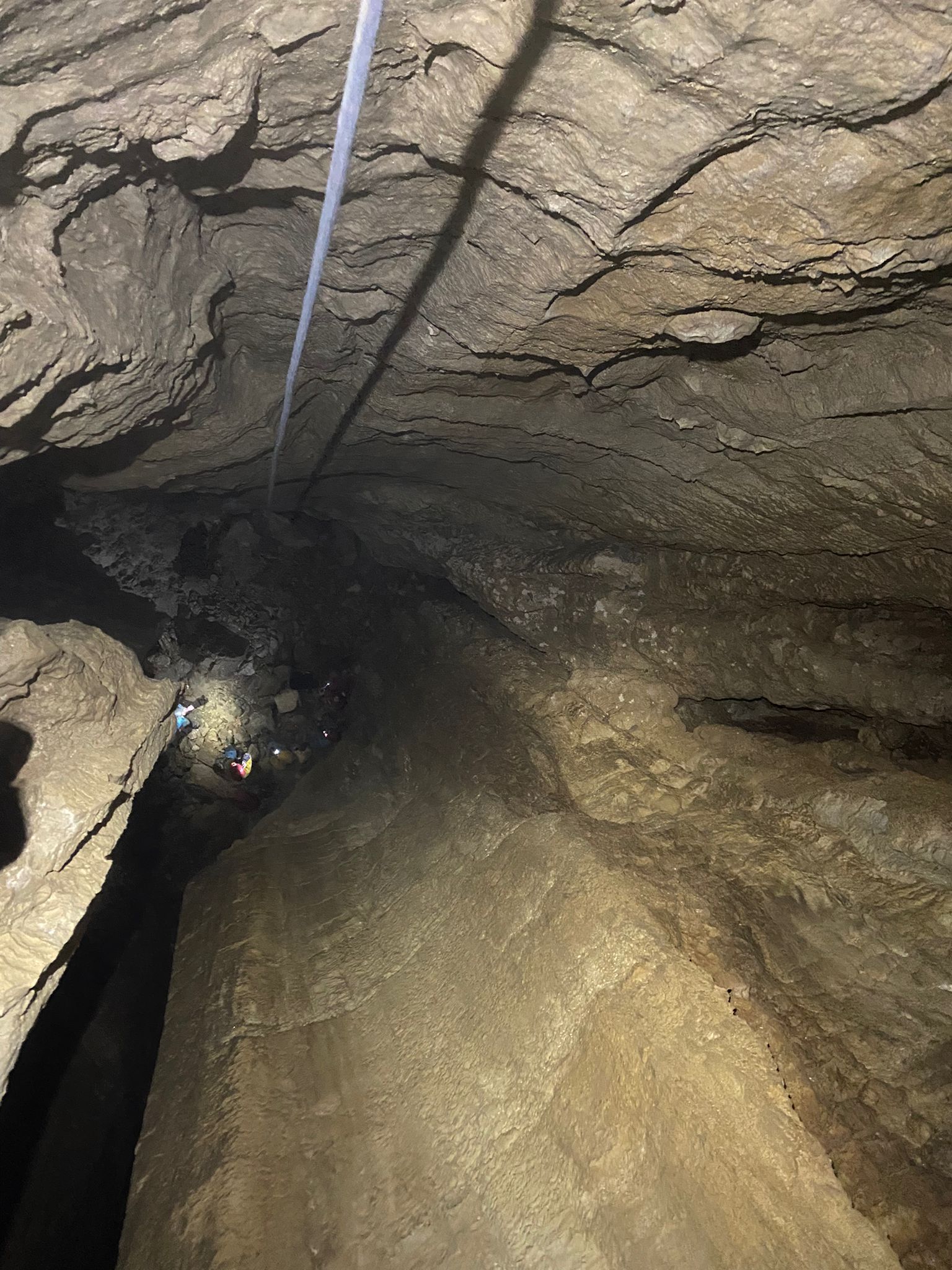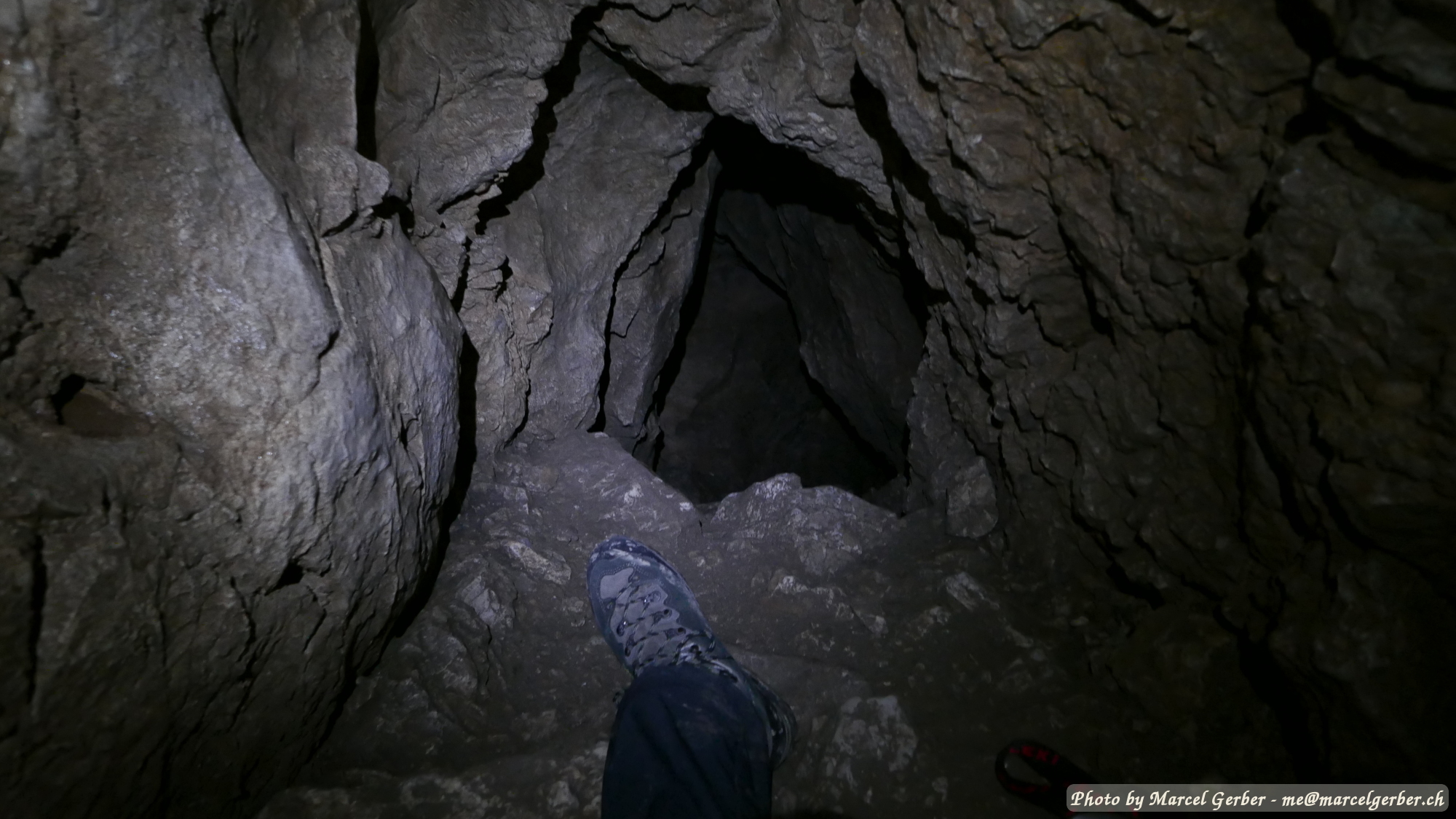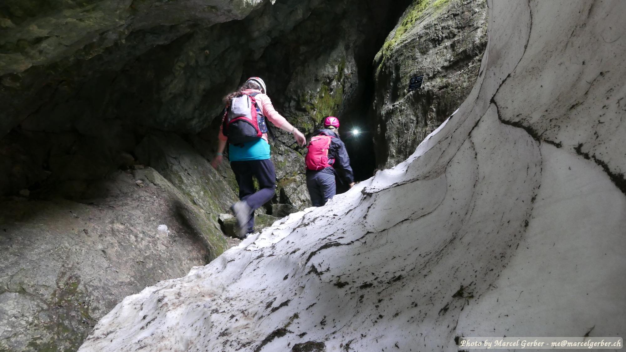 Sur le retour, on peut profiter des passages souterrains pour retourner de l'autre côté du rocher. Prévoir une lampe frontale par personne.