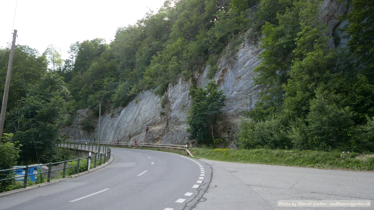 Le lendemain, pour éviter d’être bloqué à la descente, nous sommes partis grimper à Massongex. Le tour de France voulait nous empêcher de grimper deux fois au même endroit.