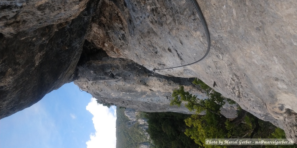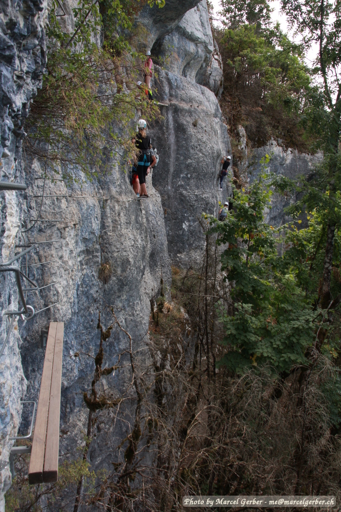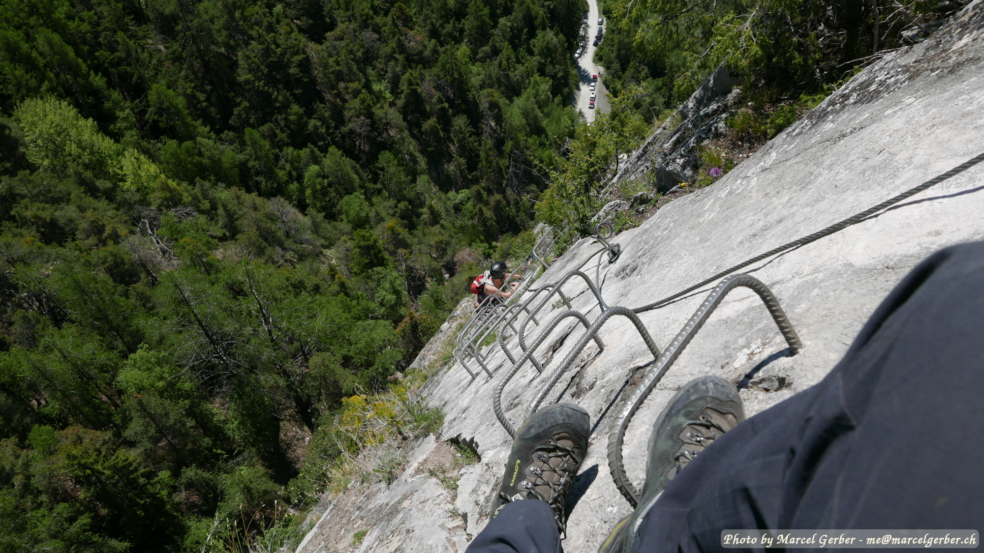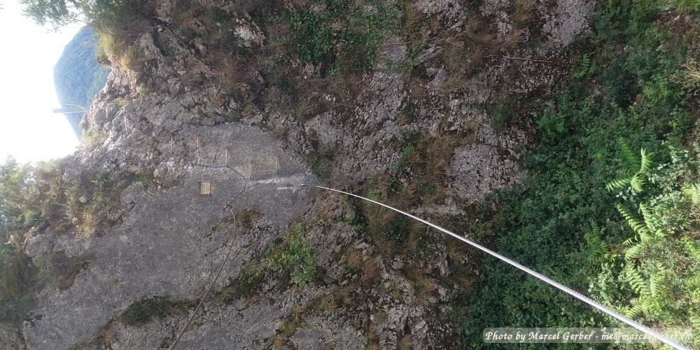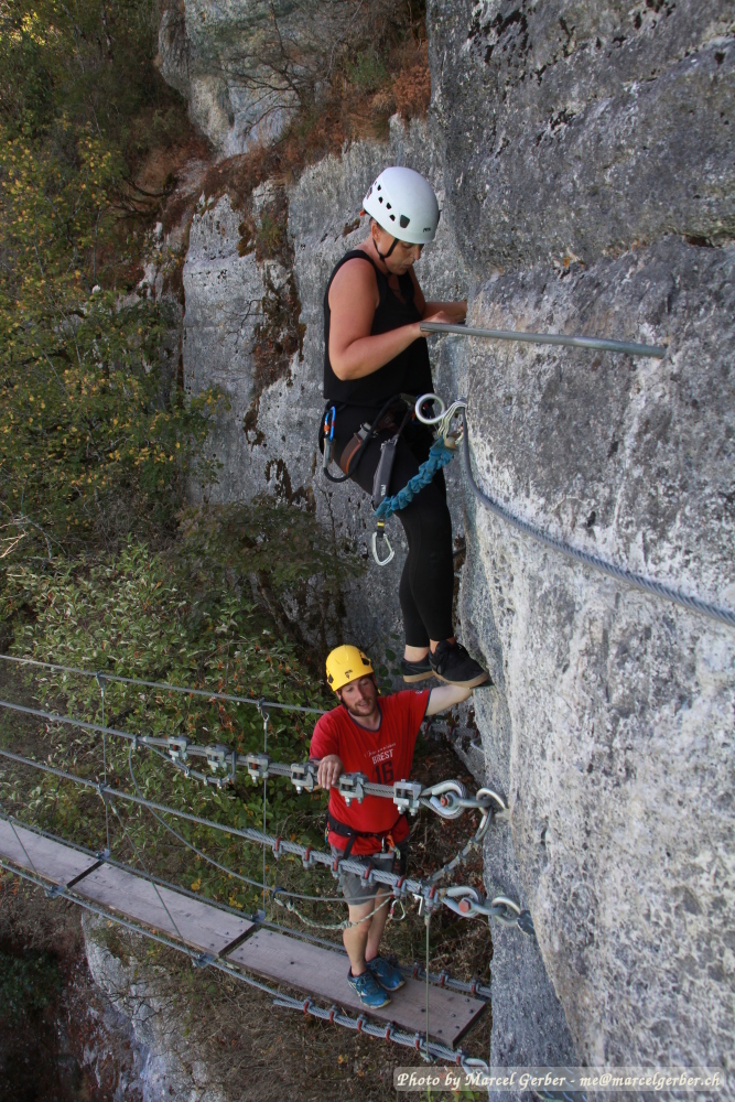 Un peu plus technique par moments, celle-ci en devient aussi plus intéressante. Pour un grimpeur, elle ne pose aucun problème. Un passage différent dans une cheminée convaincra du style de cette via. Pour les férus de passerelles en tout genre, ce n'est pas leur premier choix.