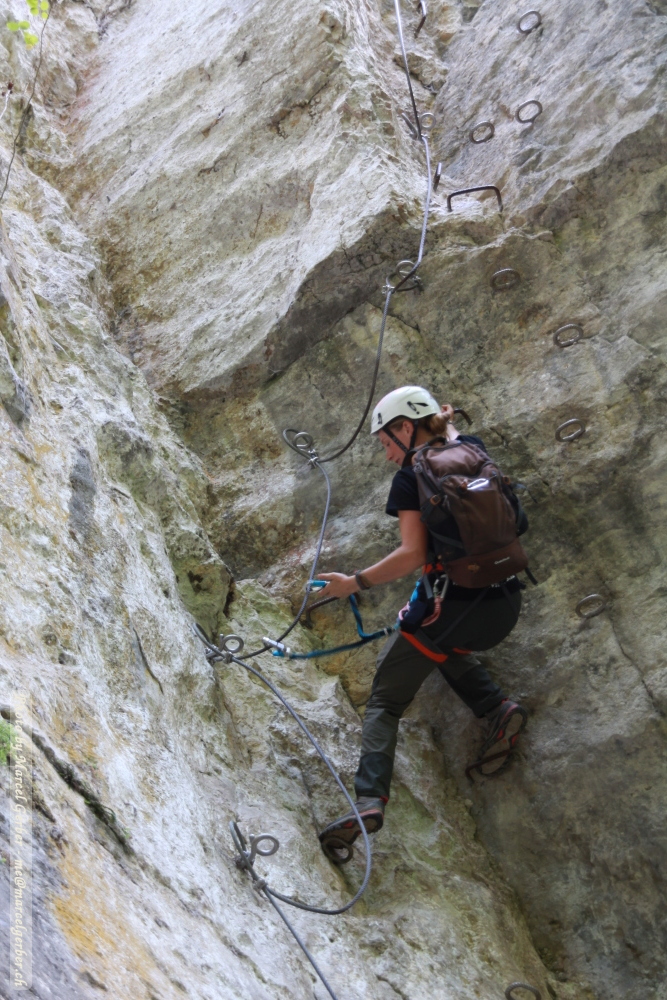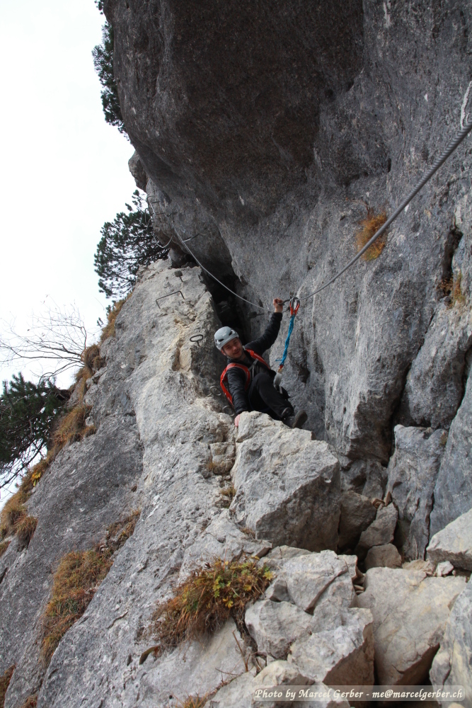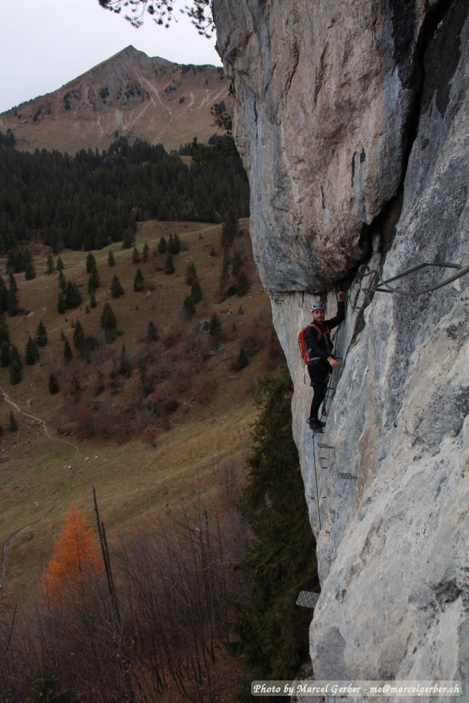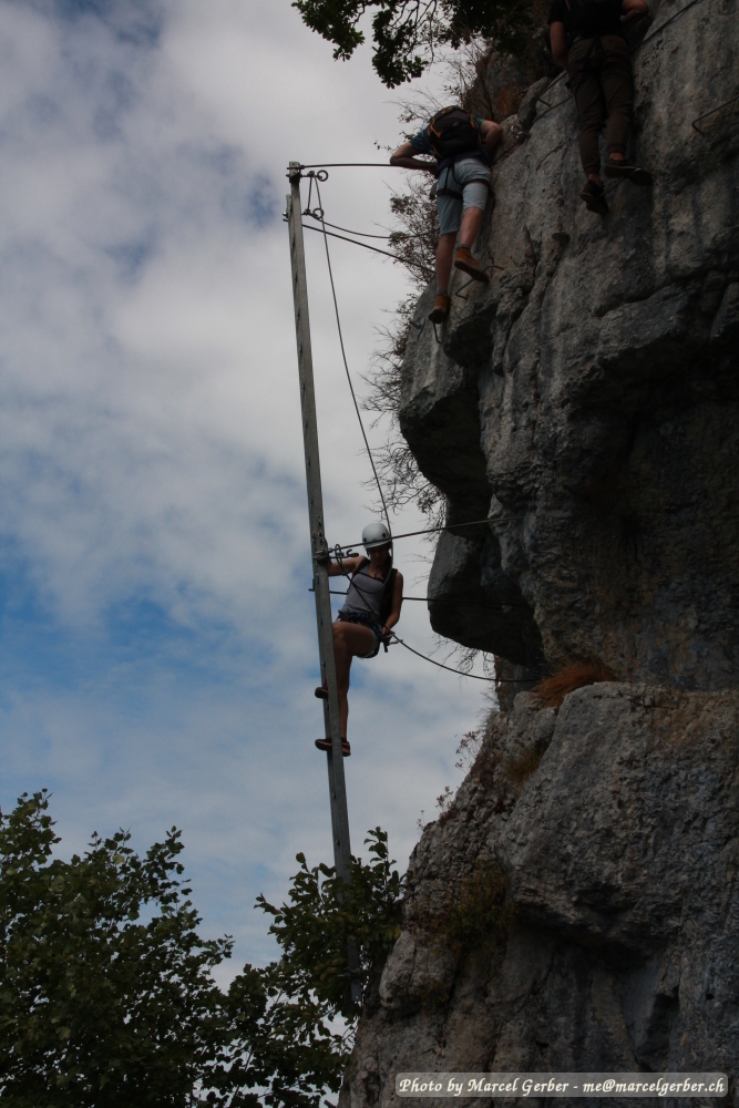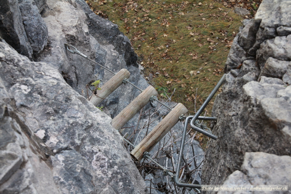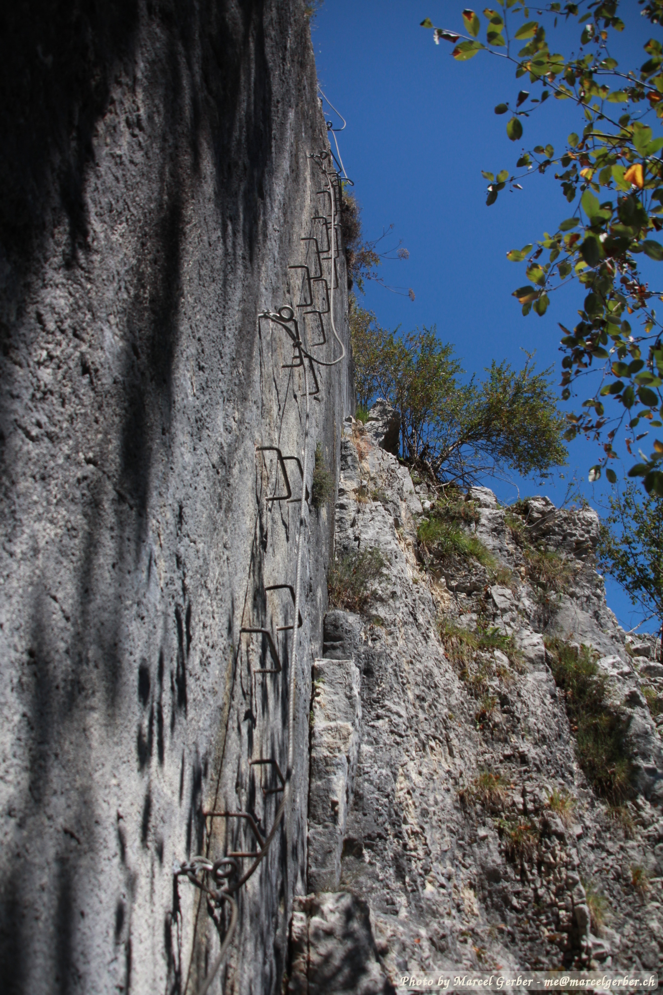 Un peu plus technique par moments, celle-ci en devient aussi plus intéressante. Pour un grimpeur, elle ne pose aucun problème. Un passage différent dans une cheminée convaincra du style de cette via. Pour les férus de passerelles en tout genre, ce n'est pas leur premier choix.
