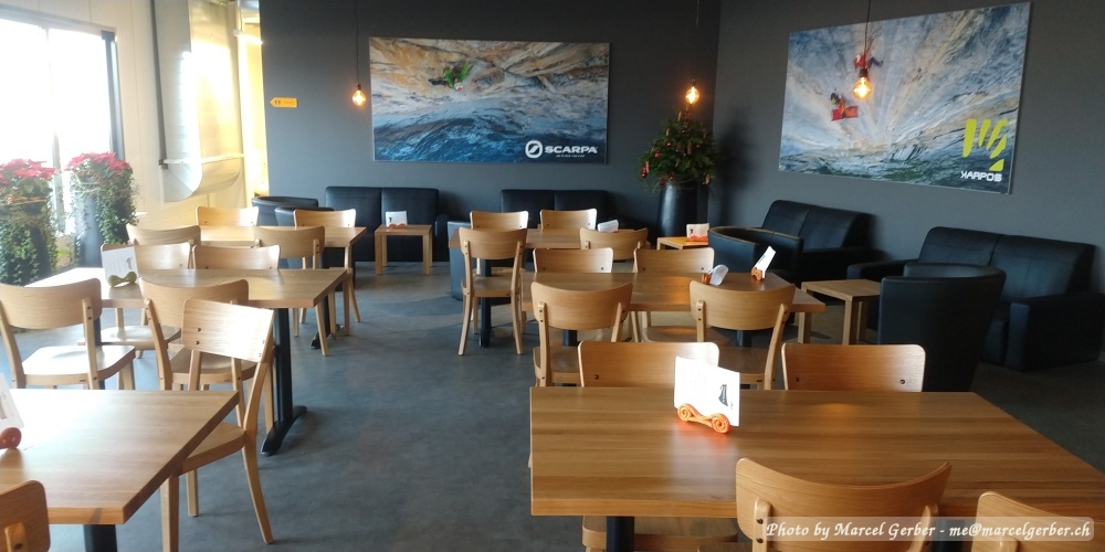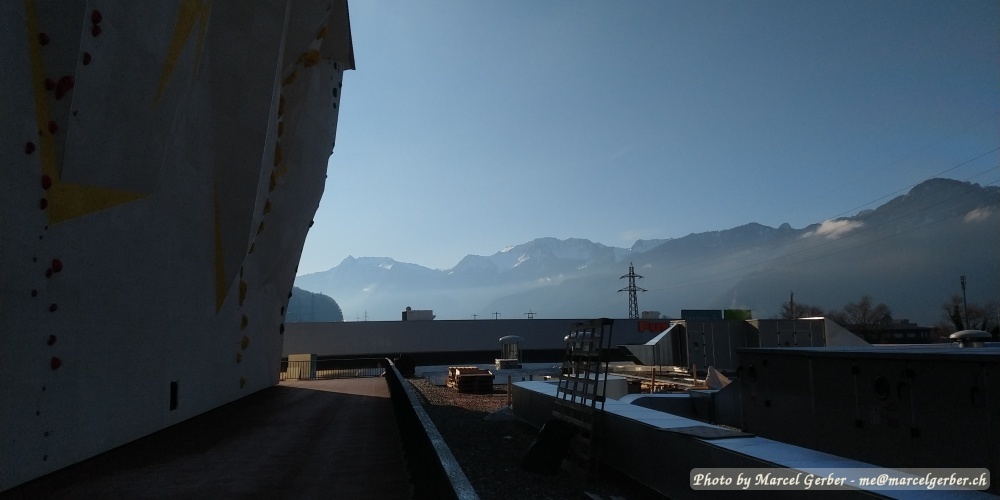 Nous ne devrions pas le dire, mais un truc sympa, c'est de voir les montagnes ensoleillées à travers les vitres. C'est aussi la seule salle dans laquelle il faut assurer avec des lunettes de soleil, dixit Alain. Mais bon, pourquoi aller en salle quand il fait si beau dehors ? Il y a maintenant tout simplement des gens qui préfèrent l'intérieur quand il fait frais dehors :-P