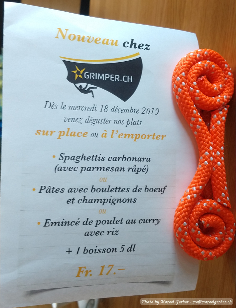 Contrairement à bien d'autres salles en Suisse Romande, Villeneuve propose des menus du jour pour se requinquer après l'effort. Les bières et la petite restauration de RocSpot y sont aussi en vente.