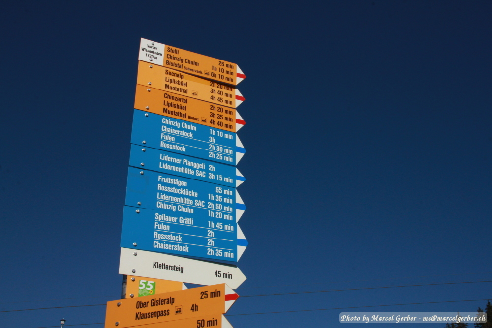 Si on est en forme (pas comme moi), on peut se faire l'un et/ou l'autre des sommets de la région. Le Rossstock semble être le plus prisé des indigènes. Le Fulen est juste à côté. Pour les deux, il faut monter à la Rossstocklücke. Ce sentier comporte quelques difficultés d'accès à la fin. Il faut monter à travers la falaise. Mais c'est chouette. Il faut compter 1 heure d'ascencion jusqu'à l'un des deux pics depuis la fin de la via.