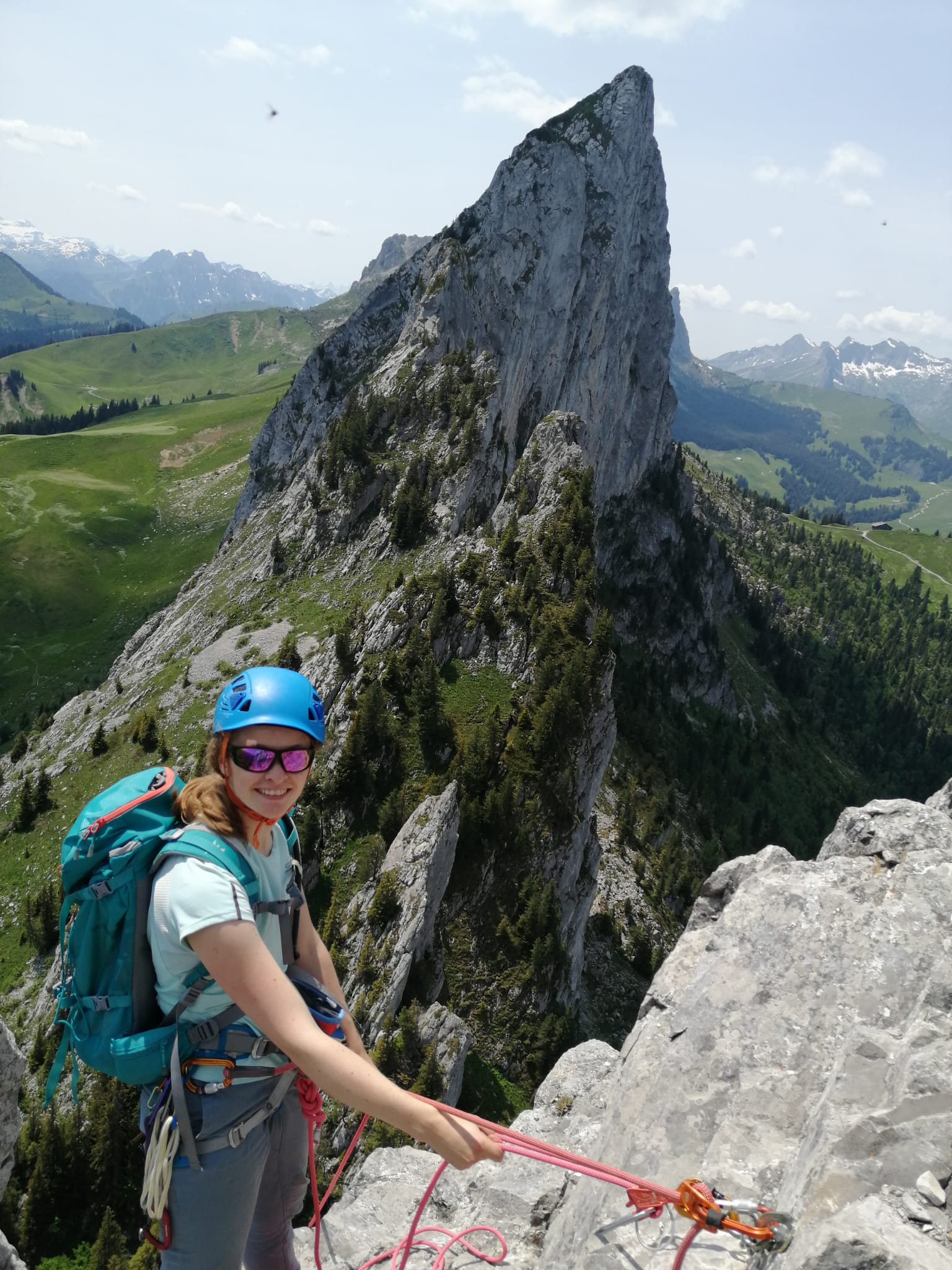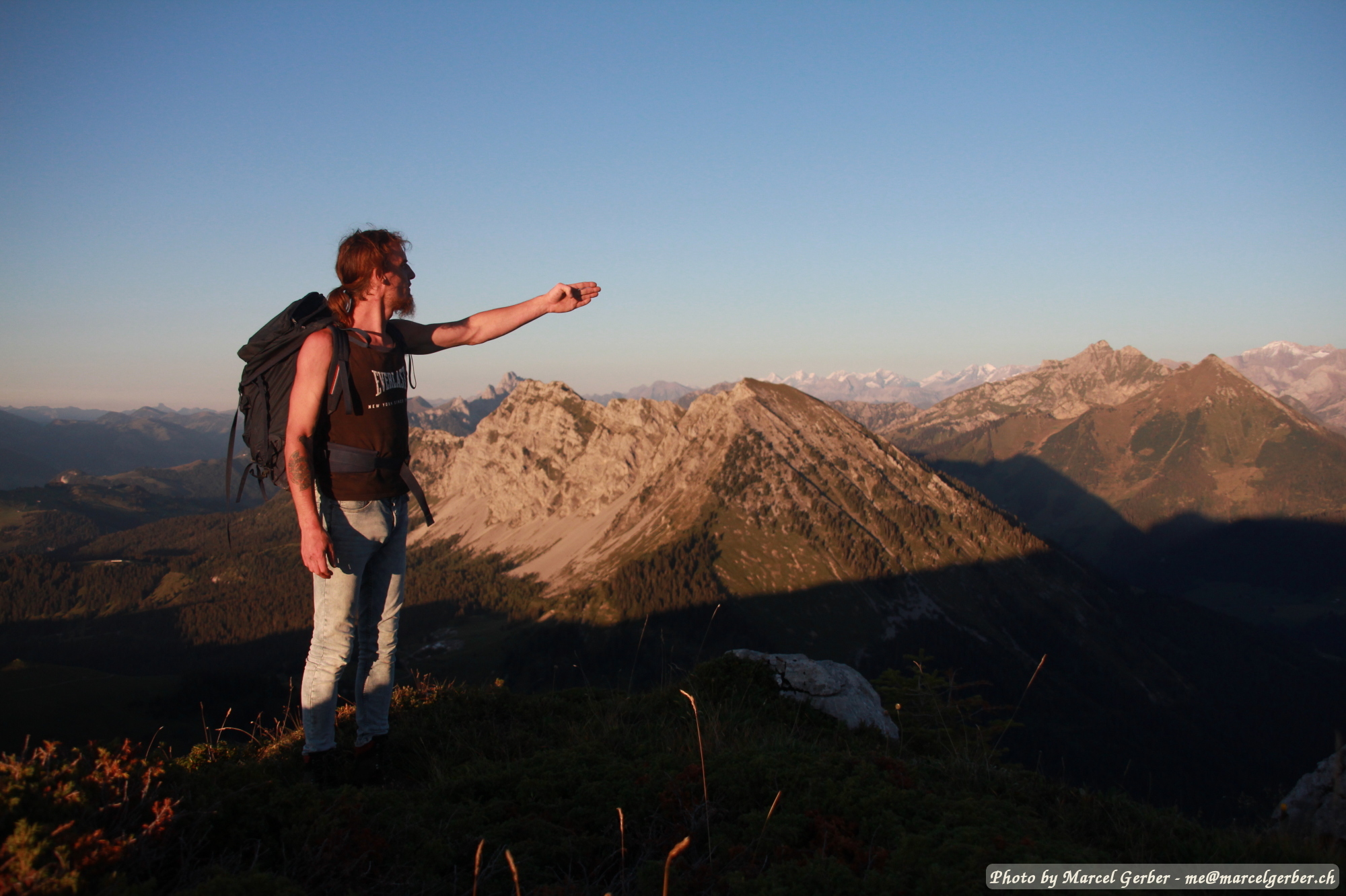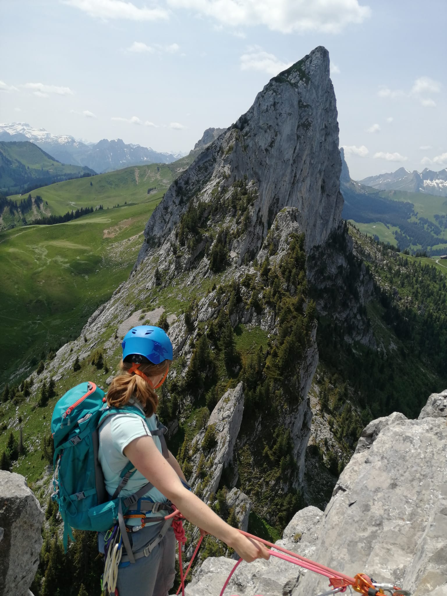 Mais quelle belle région que la Gruyère ! J’avais en tête de traversée cette chaîne de calcaire il y a très longtemps ! Cette année je me suis promis de le faire ! J’y suis allé une première fois, la fleur au fusil, en zigzaguant entre les béquets et en me prenant un orage d’ailleurs… Ambiance ! Je publie quelques photos sur le groupe Whatsapp de l’association et BIIMMM ! Pleins de personnes sont enthousiastes à faire cette traversée ! Allez hop, on va y retourner alors ! C’est tellement beau et cette fois, je grimperai au sommet de ces nombreux pics ! Sur la route, je reconnais le camion de Nina Caprez, célèbre grimpeuse suisse qui m’a donné envie de grimper avec son film ‘Silbergeiger’. Je lui tape la causette et reviens avec les jambes toutes flagada d’avoir rencontré une de mes idoles. Elle enchaînera ‘Yeah man’ une grande voie en 8b+ le lendemain.