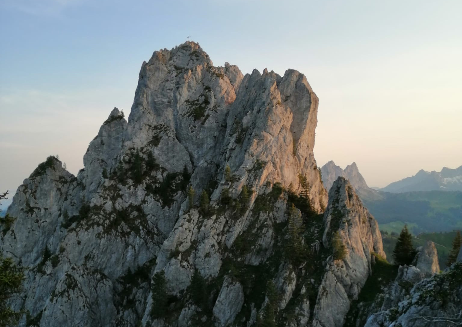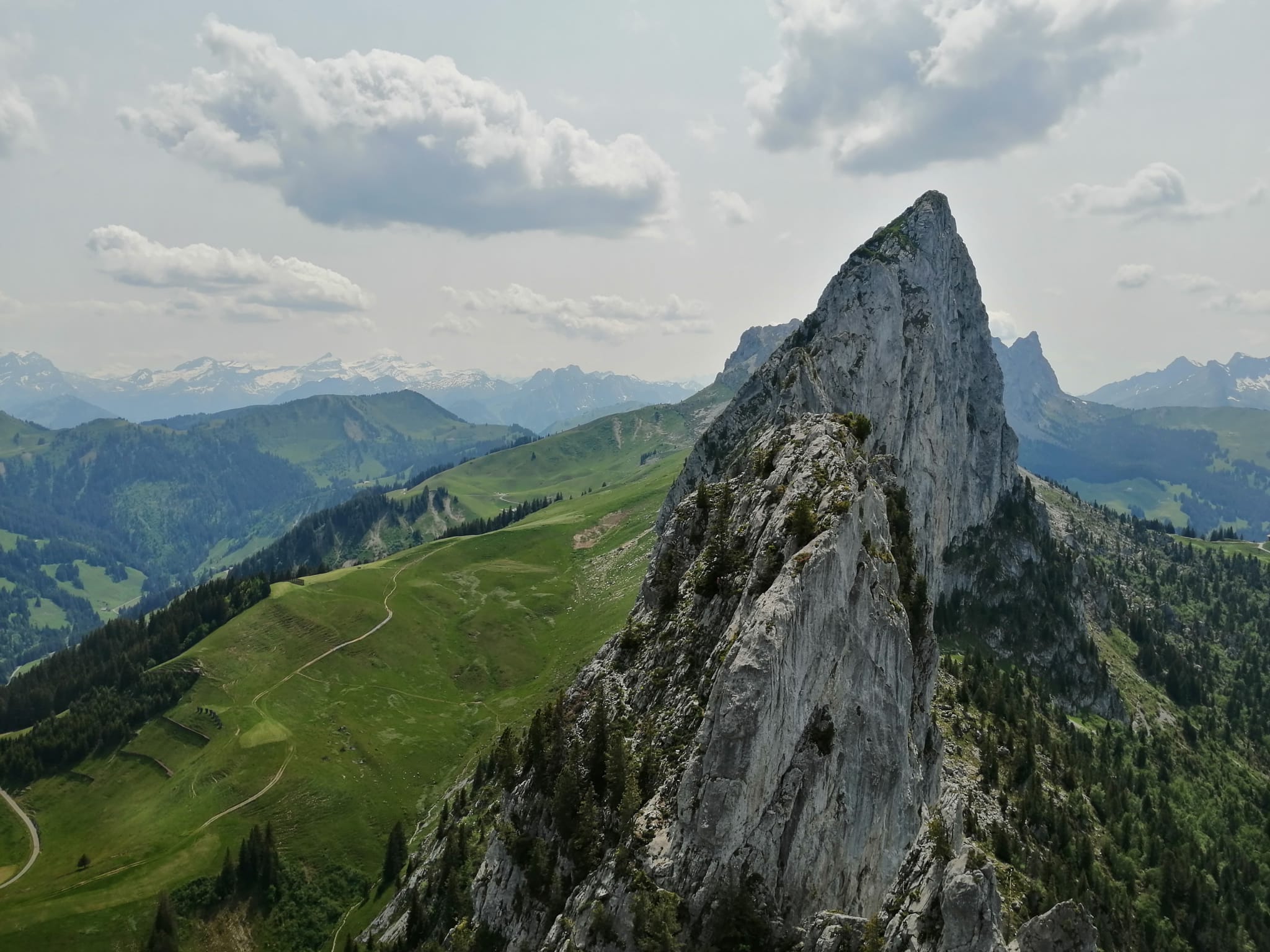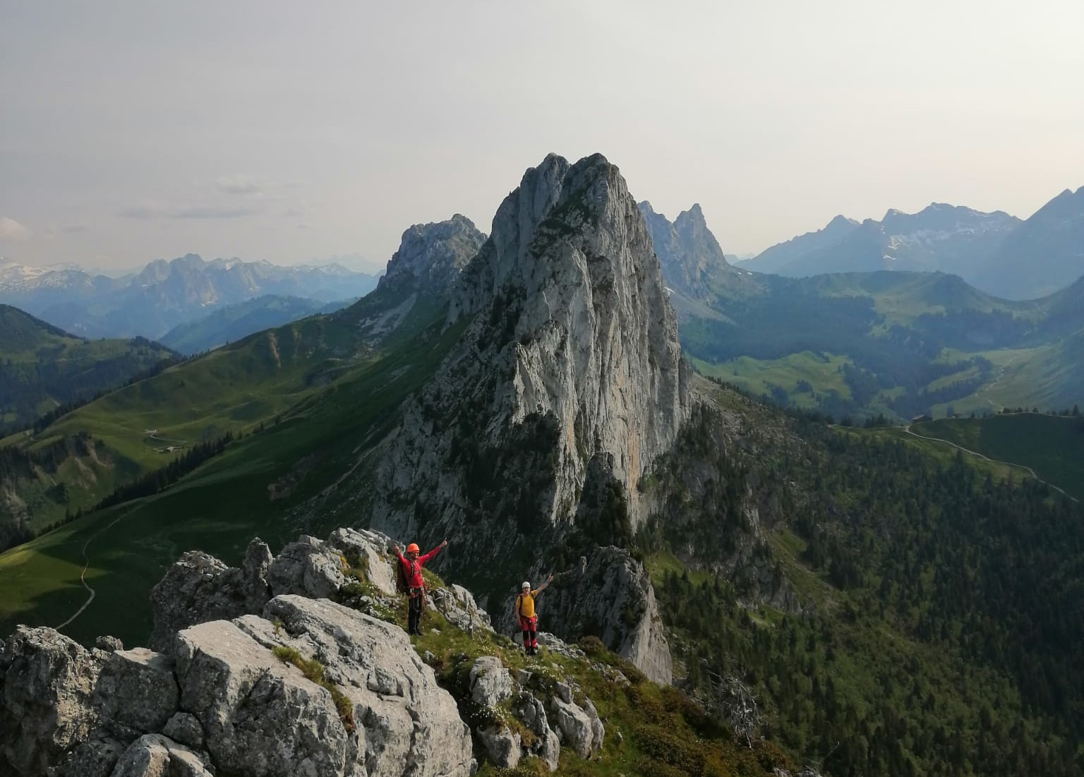 Mais quelle belle région que la Gruyère ! J’avais en tête de traversée cette chaîne de calcaire il y a très longtemps ! Cette année je me suis promis de le faire ! J’y suis allé une première fois, la fleur au fusil, en zigzaguant entre les béquets et en me prenant un orage d’ailleurs… Ambiance ! Je publie quelques photos sur le groupe Whatsapp de l’association et BIIMMM ! Pleins de personnes sont enthousiastes à faire cette traversée ! Allez hop, on va y retourner alors ! C’est tellement beau et cette fois, je grimperai au sommet de ces nombreux pics ! Sur la route, je reconnais le camion de Nina Caprez, célèbre grimpeuse suisse qui m’a donné envie de grimper avec son film ‘Silbergeiger’. Je lui tape la causette et reviens avec les jambes toutes flagada d’avoir rencontré une de mes idoles. Elle enchaînera ‘Yeah man’ une grande voie en 8b+ le lendemain.