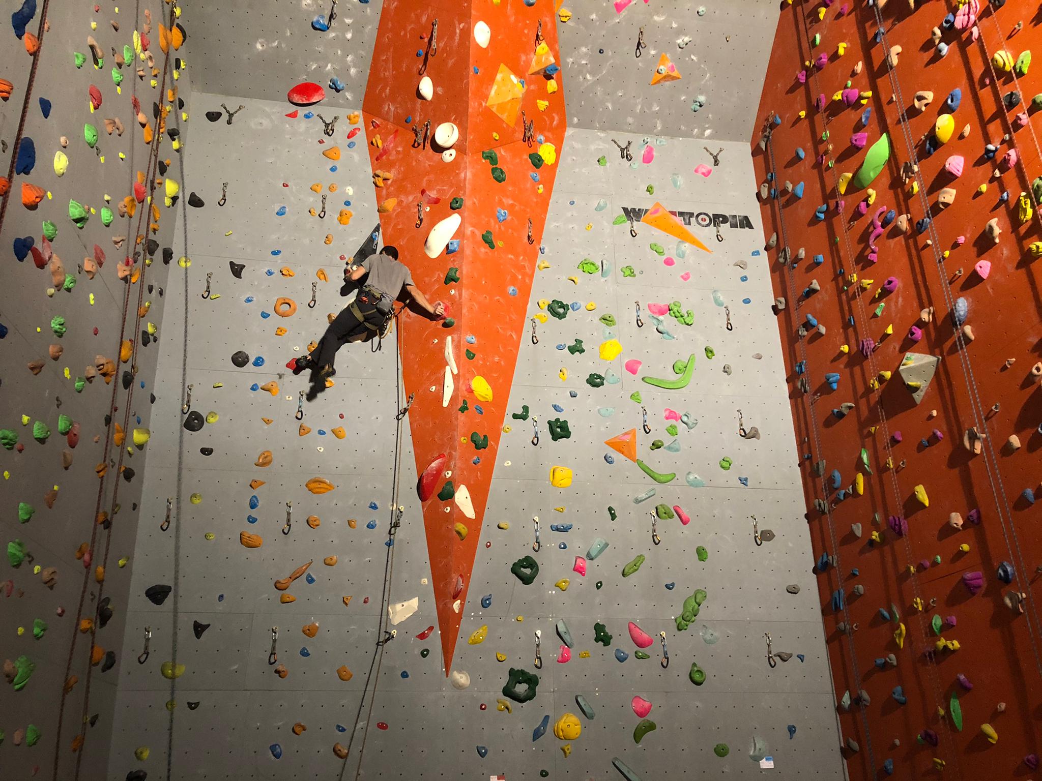 Entrer dans le centre commercial un dimanche, ça fait un peu bizarre. Tous les magasins sont fermés. Nous nous sommes rendus à l'étage de la salle de grimpe en évitant les escalators bruyants. On aurait dit que ces derniers avaient été repris d'un centre commercial du siècle passé.