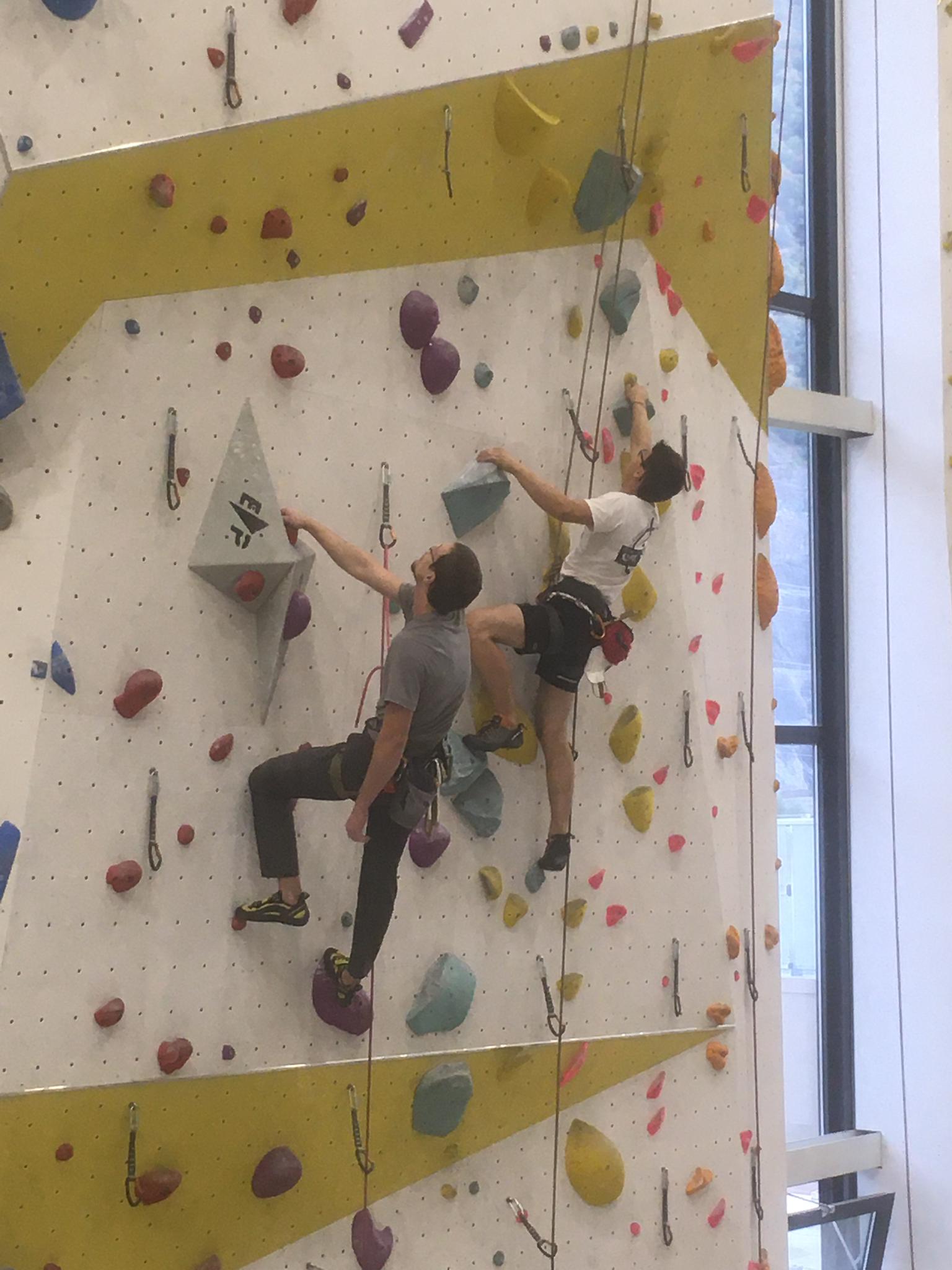 Le samedi, le ciel était couvert et menaçant. Une partie du groupe a donc choisi de grimper en salle, à Villeneuve.