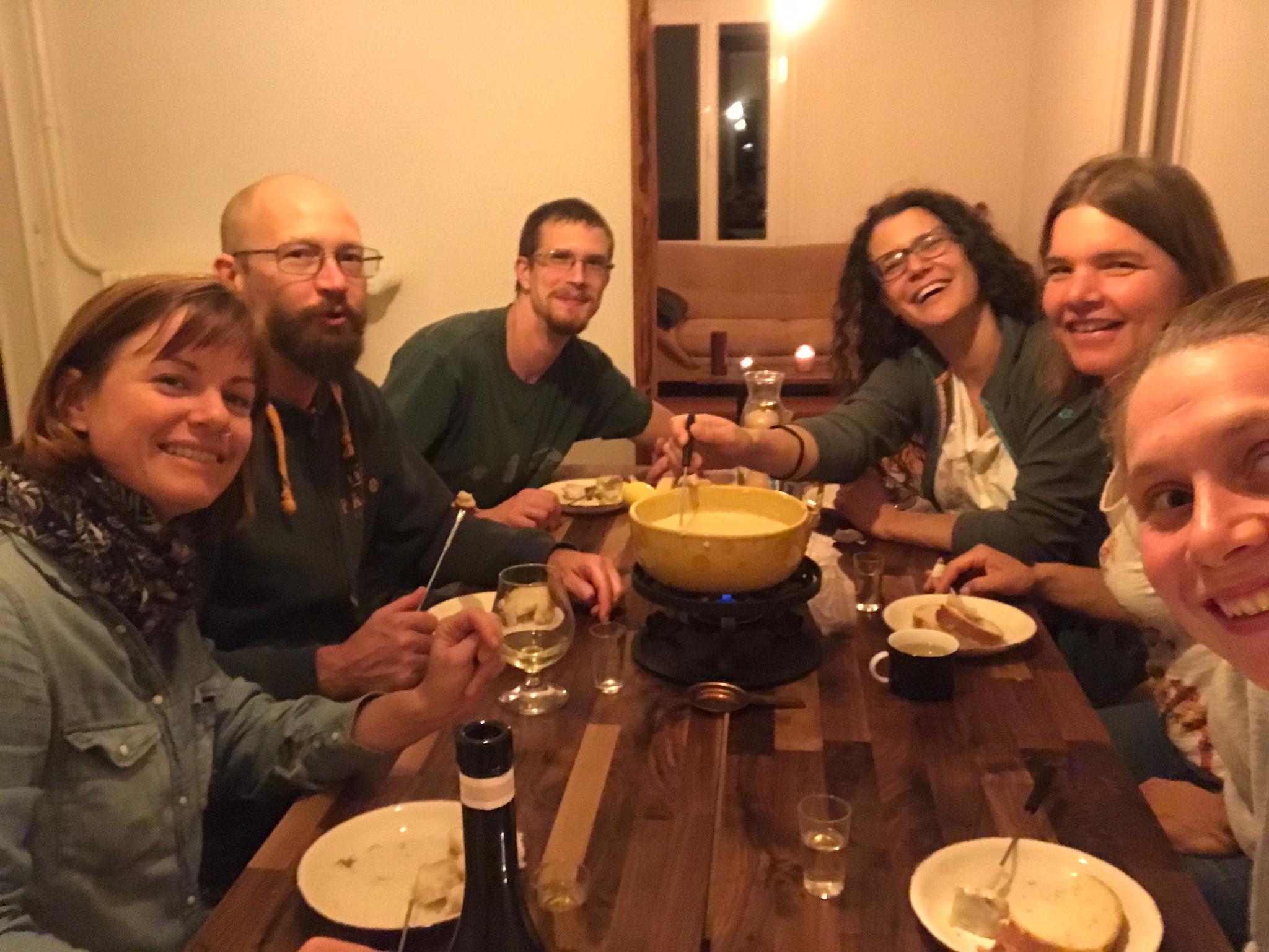 Finalement nous sommes passé de quatre à six convives autour de cette fondue. L’atmosphère était aux blagues et à la bonne compagnie. Nous y avons goûté le Rèze, vin des glaciers. Apparemment c’est un vin qui s’est vu amélioré dans un passé relativement proche, car avant il était très astringent. Pour les intéressés, il y un article instructif ici.