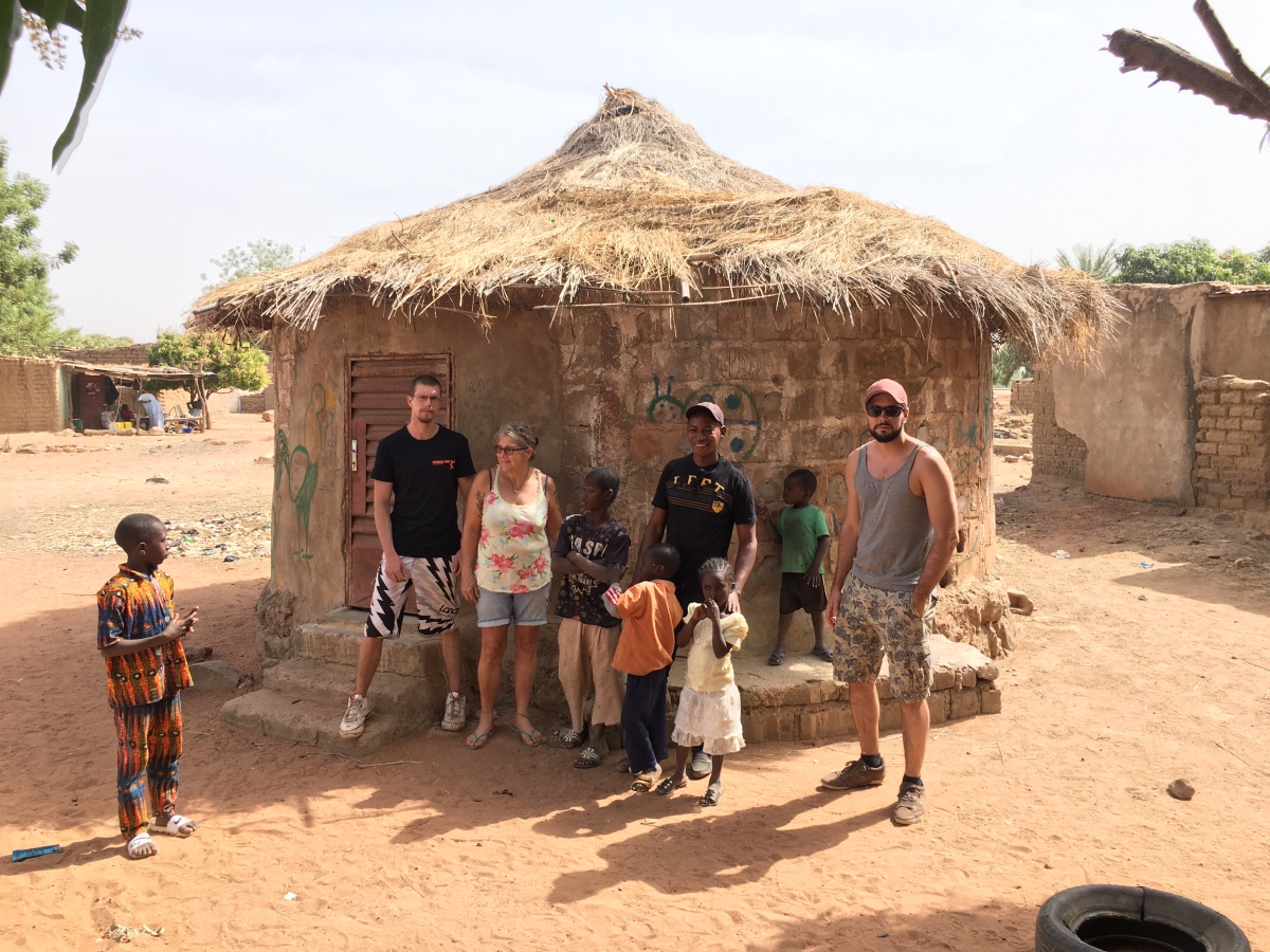 Après la marche, nous sommes redescendus au village pour nous désaltérer. Le groupe « grimpe en salle » nous a rejoints et nous avons partagé l’apéro, puis un repas sous la grande tente du FIFAD. Autour de nous, une quinzaine de petits chalets en bois proposaient des mets venus du monde entier.