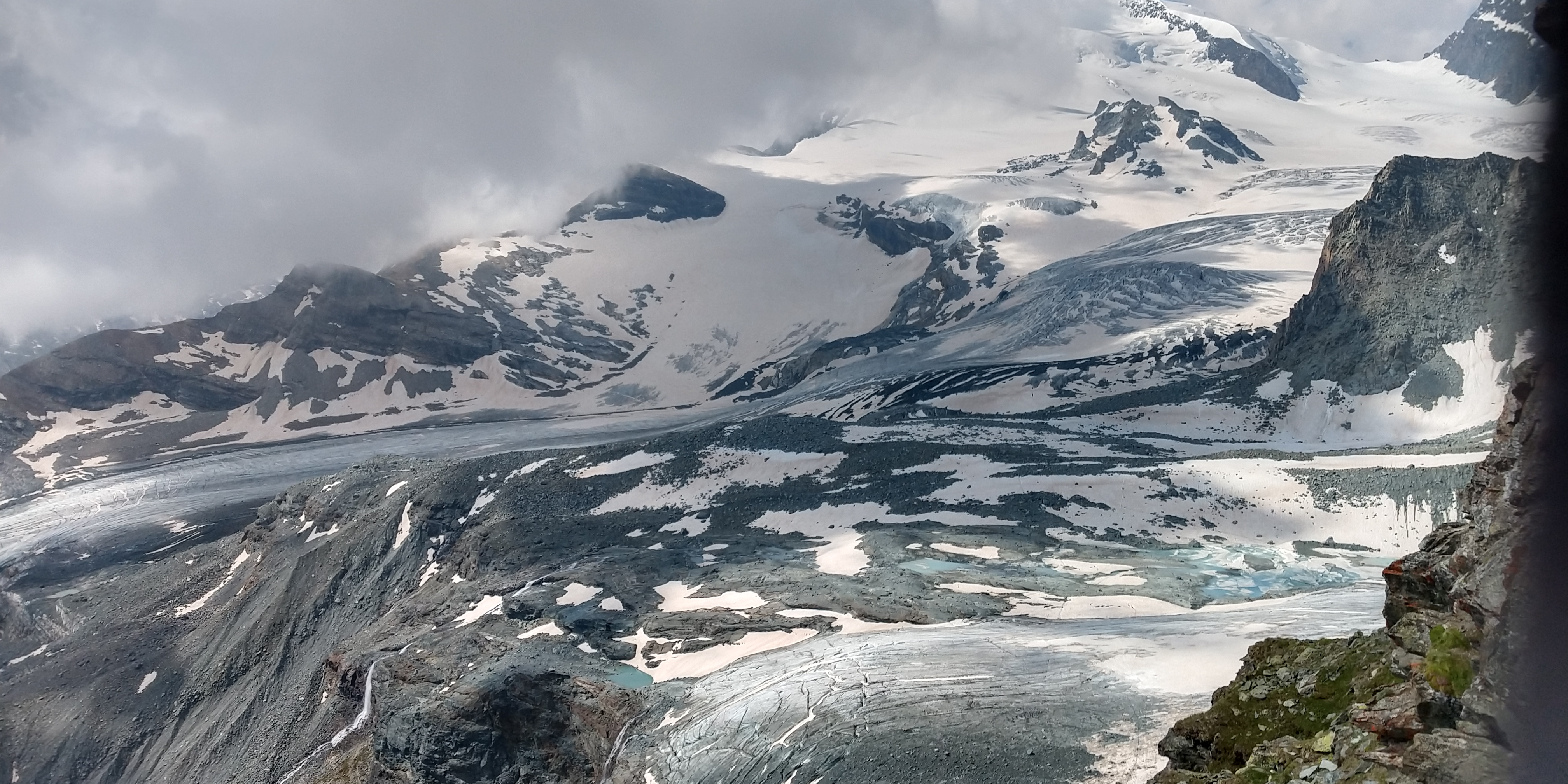 Cette boucle facile d’environ 8 km (2 h de marche) nous a menés jusqu’au Creux de Champ, un magnifique cirque naturel au pied du glacier (voir description ici).