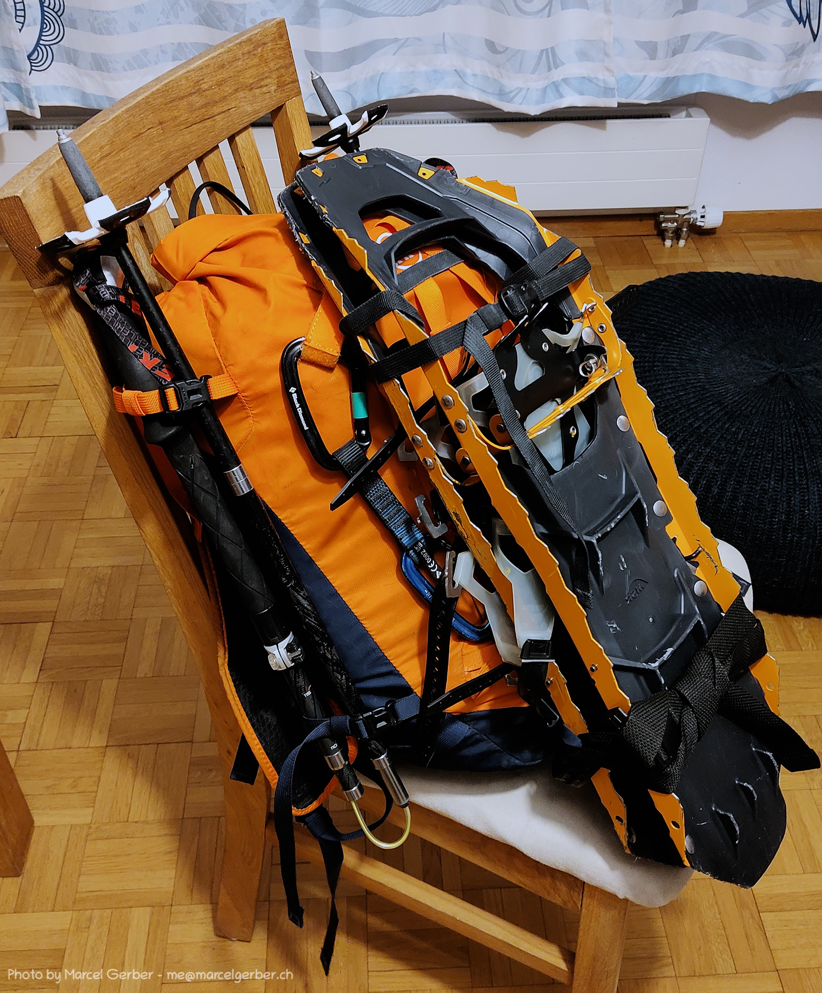 On se retrouve avec une équipe mélangée entre PMS et les copains/copines au parking de l’Obergrat à 9h, on paie la taxe. Il fait grand beau, la météo est stable. On se répartit le matos, cordes, friends, coinceurs… et go pour l’heure de marche d’approche ! Celle-ci met l’ambiance et il faut utiliser les mains sur le rocher sans avoir les pieds qui zippent sur le gravier. Il est 10h, on est au col de l’Oberberg et on se prépare. Vu qu’on ne se connaît pas/peu, qu’il y a du monde sur l’arête et qu’on est à l’ombre, on révise les techniques pour poser les relais et mettre des friends.