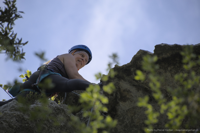 Les premiers arrivés décident d’aller grimper à Bramois, un petit secteur orienté Est conseillé par Martina qui question orientation à l’air de très bien s’y connaître!