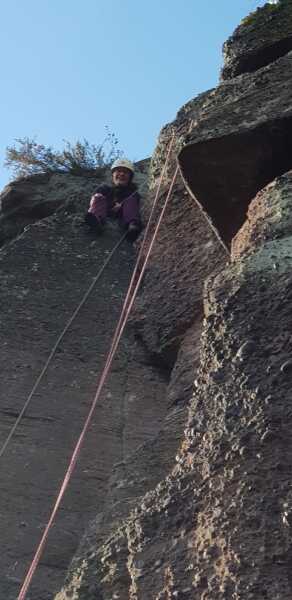 Vous avez le choix de plusieurs longues voies, dont 3 se trouvent à seulement dix minutes de marche du parking. Nous avons gravi "Allez-y Madame Mummery". Une voie de 6 longueurs variant entre 4b et 6a. Pour sortir la longueur en 6a, munissez-vous de vos techniques de dalle. Les prises main ne sont pas très présentes et la paroi tout de même assez verticale. Il y a principalement deux passages légèrement difficiles.