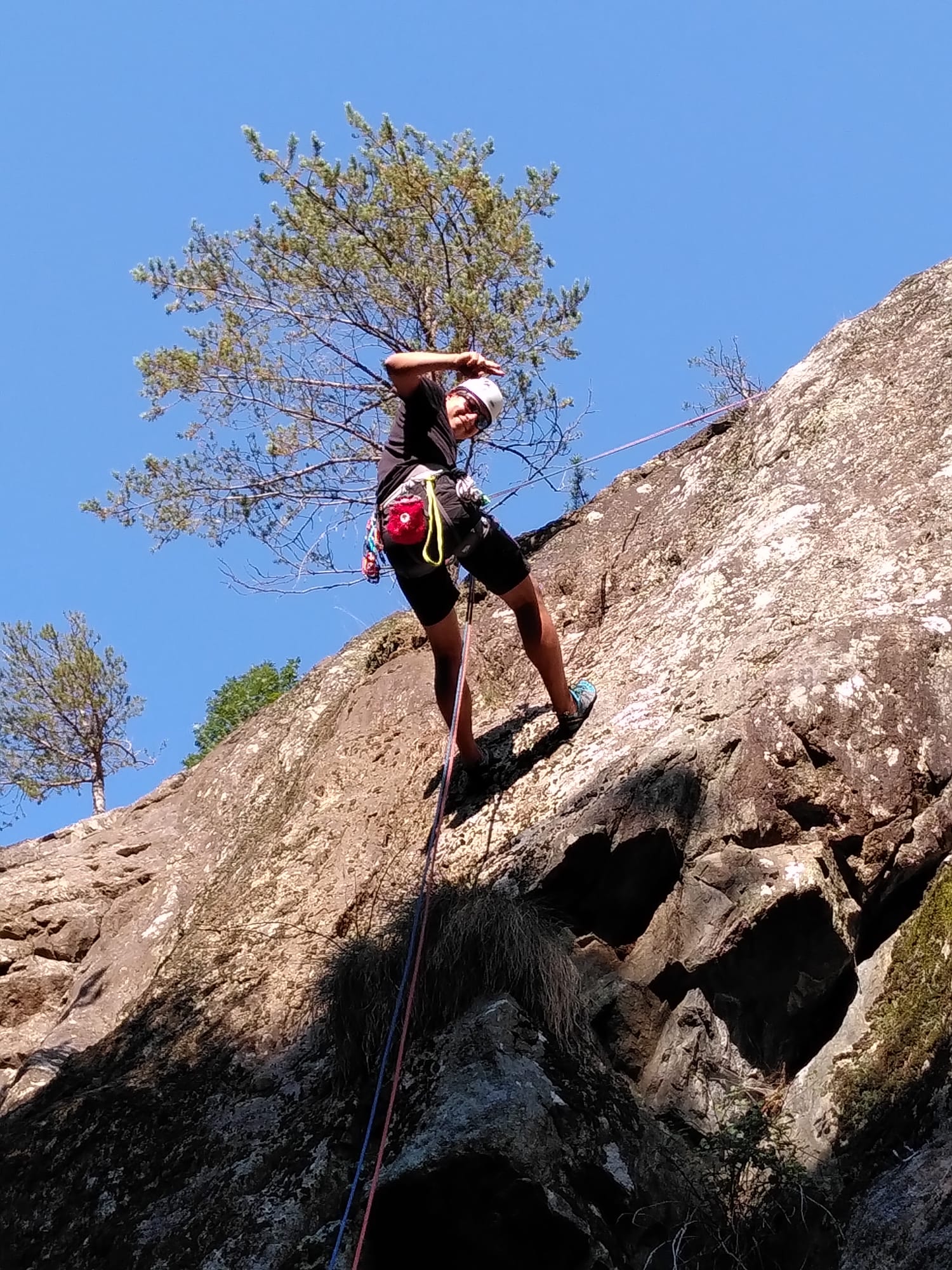 « Par terre, ça a l’air logique, mais au départ dans la voie, la pression monte: les manipulations sont tout d’un coup plus difficiles quand on est suspendu sur un spit à plusieurs mètres du sol ;) »