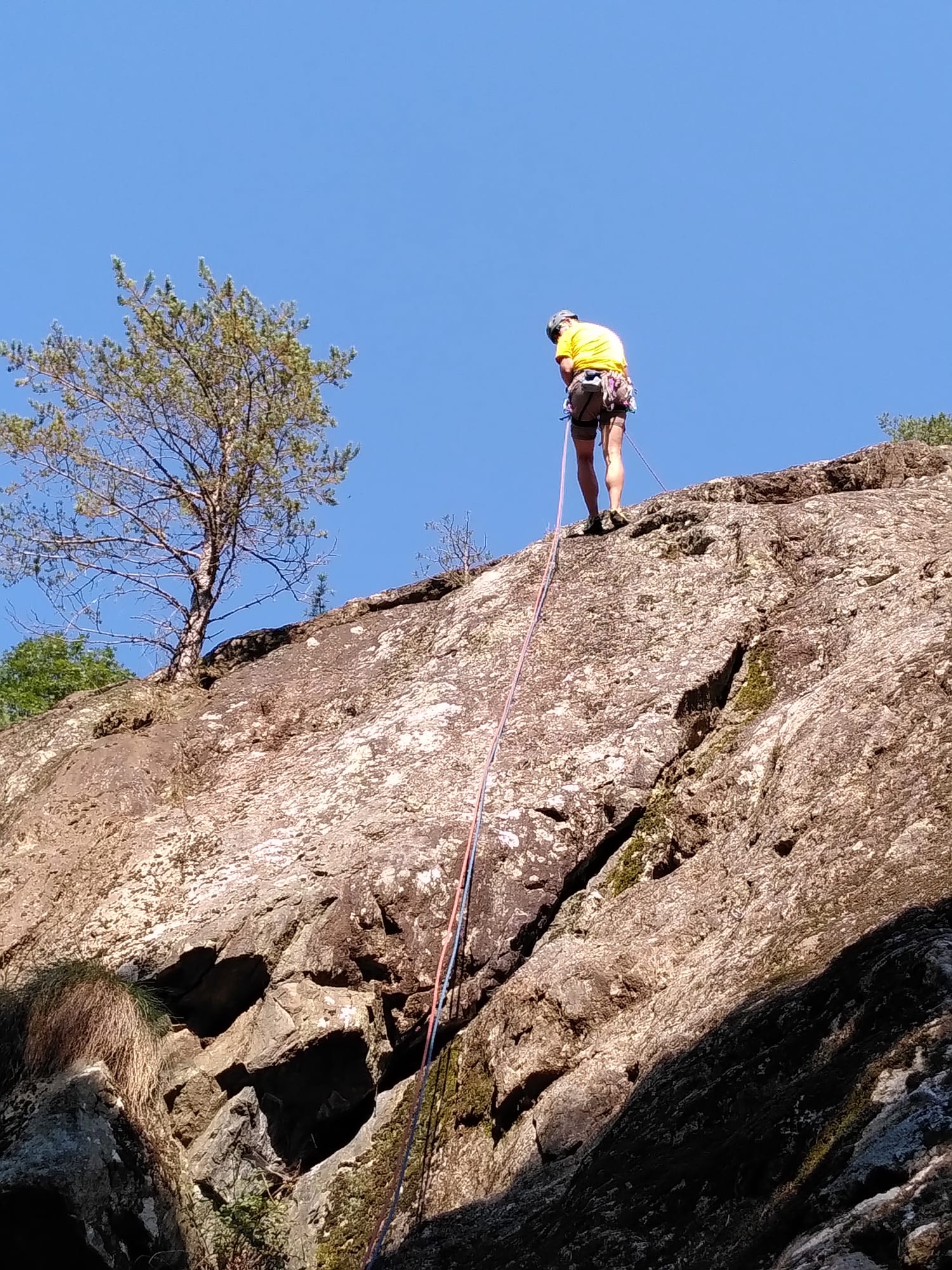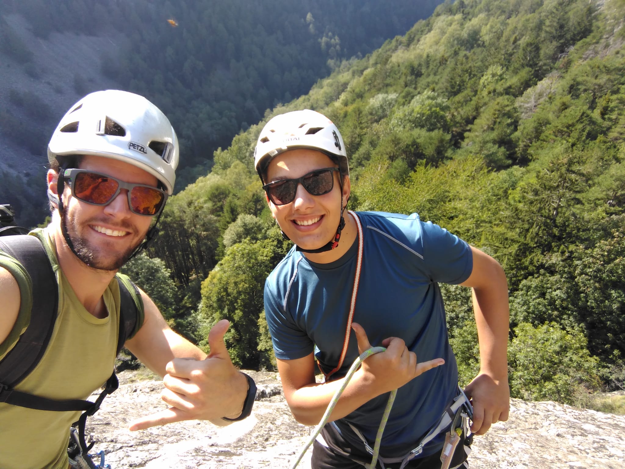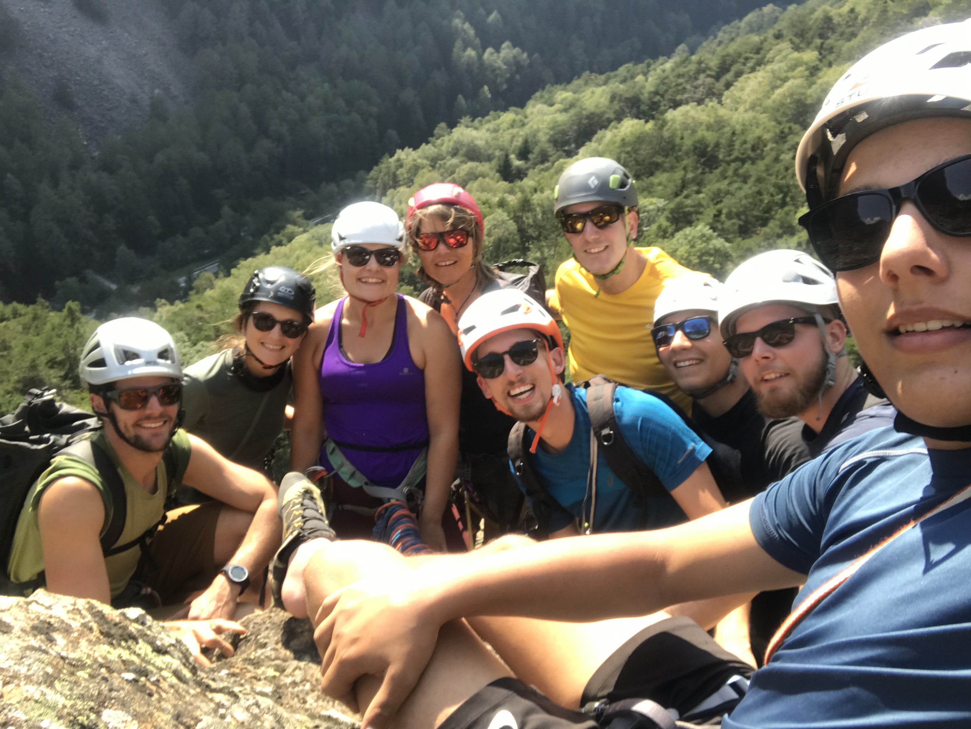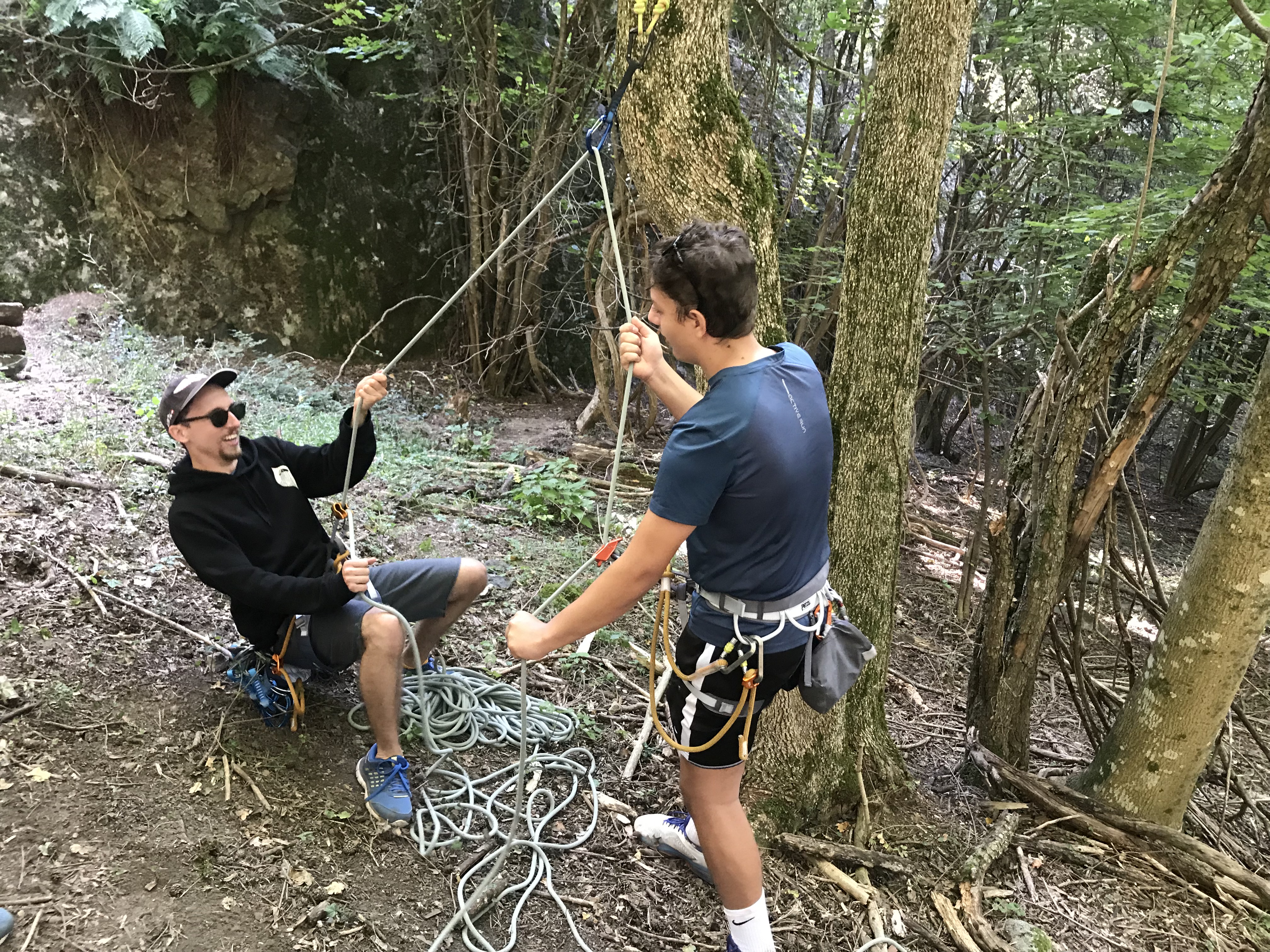 « Devinette: combien de grimpeurs se sont-ils attachés sur ce relais. (Mais VOUI, c’est conforme aux recommandations PETZL.) »