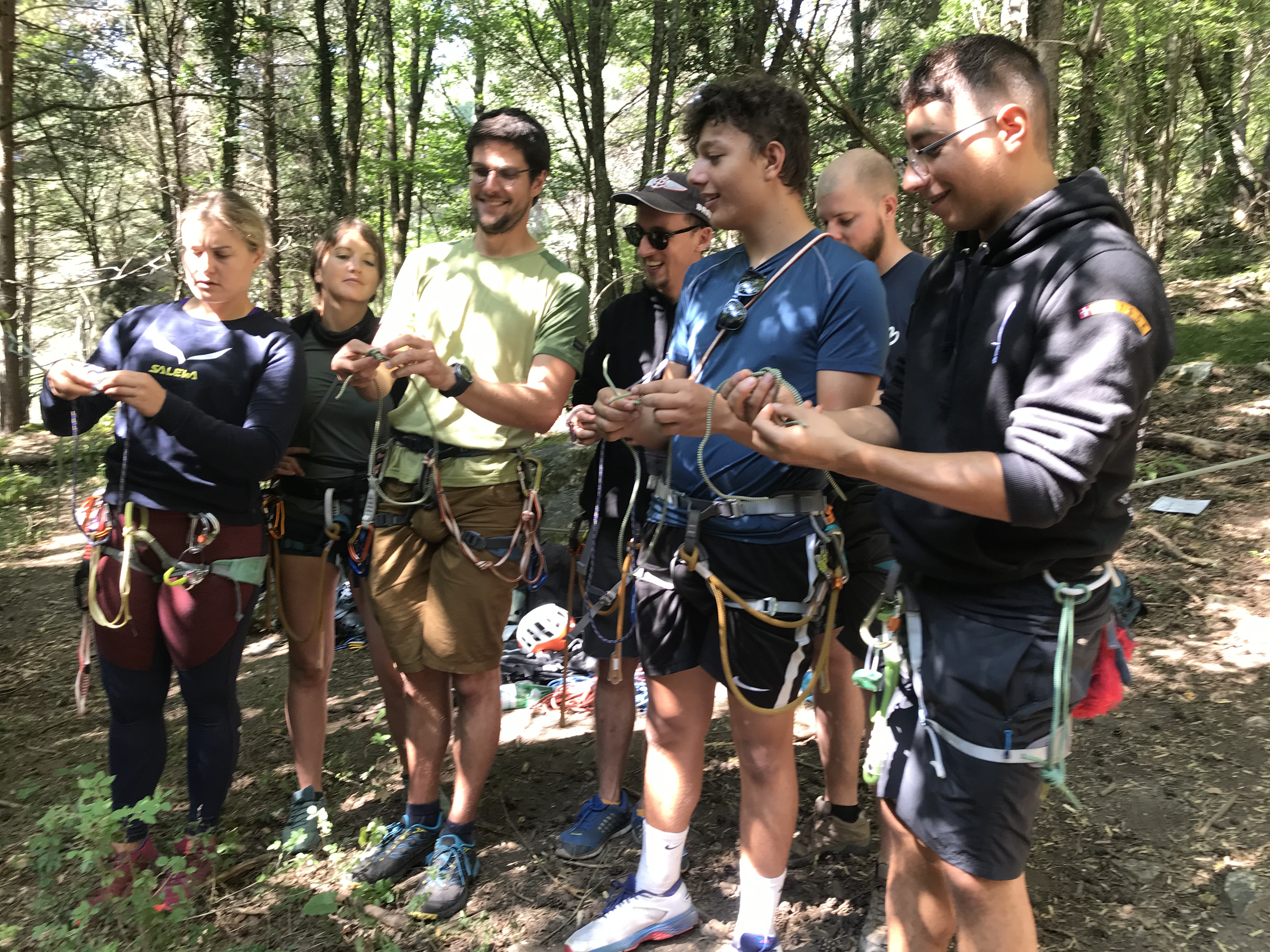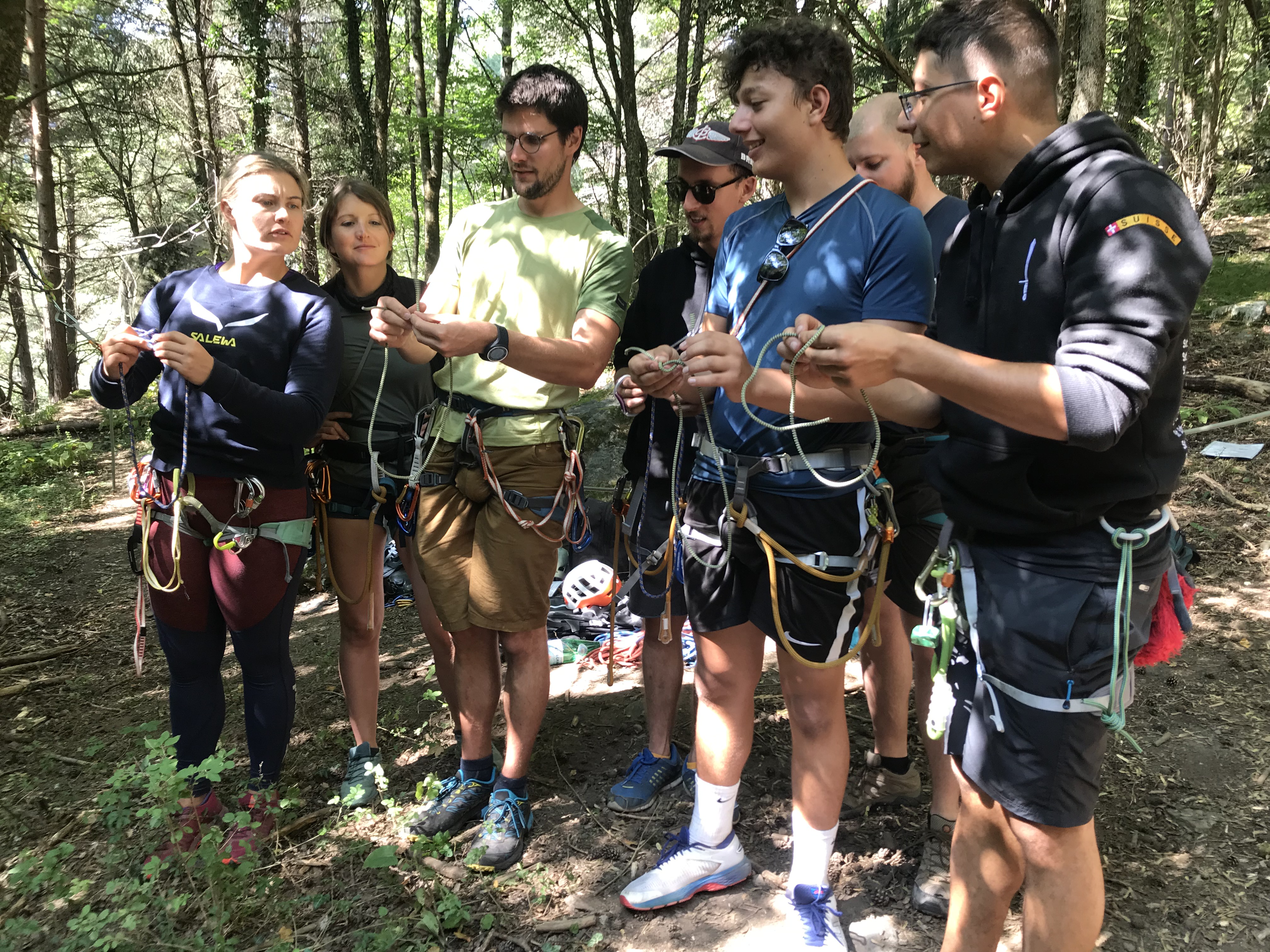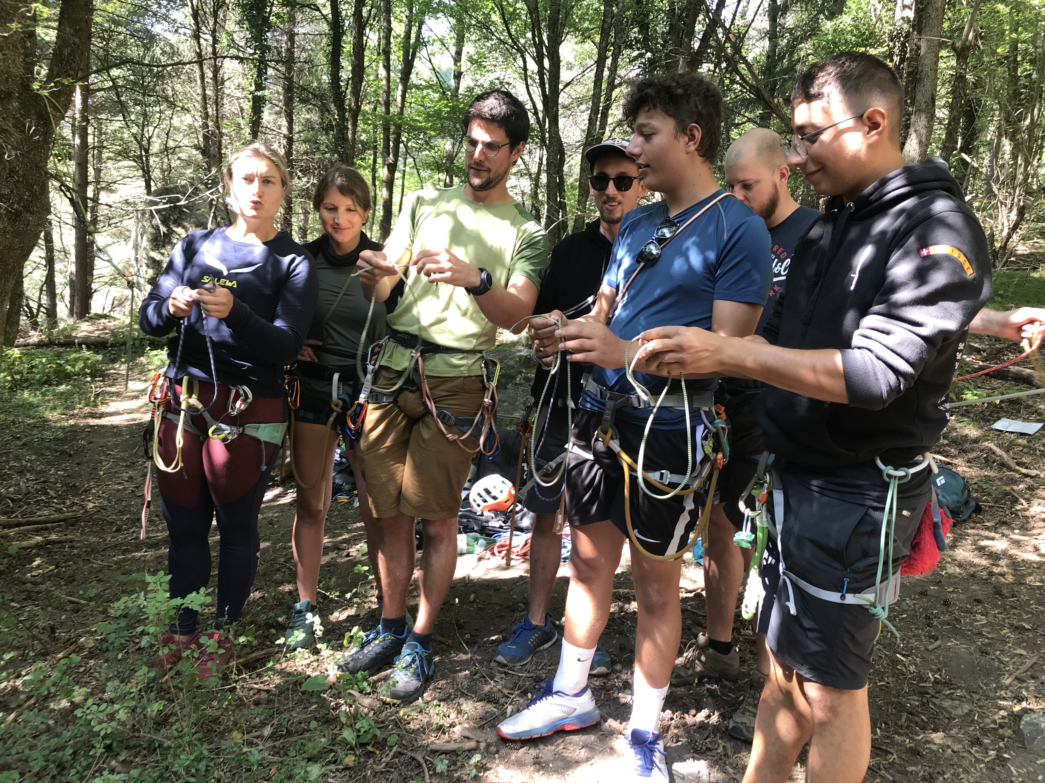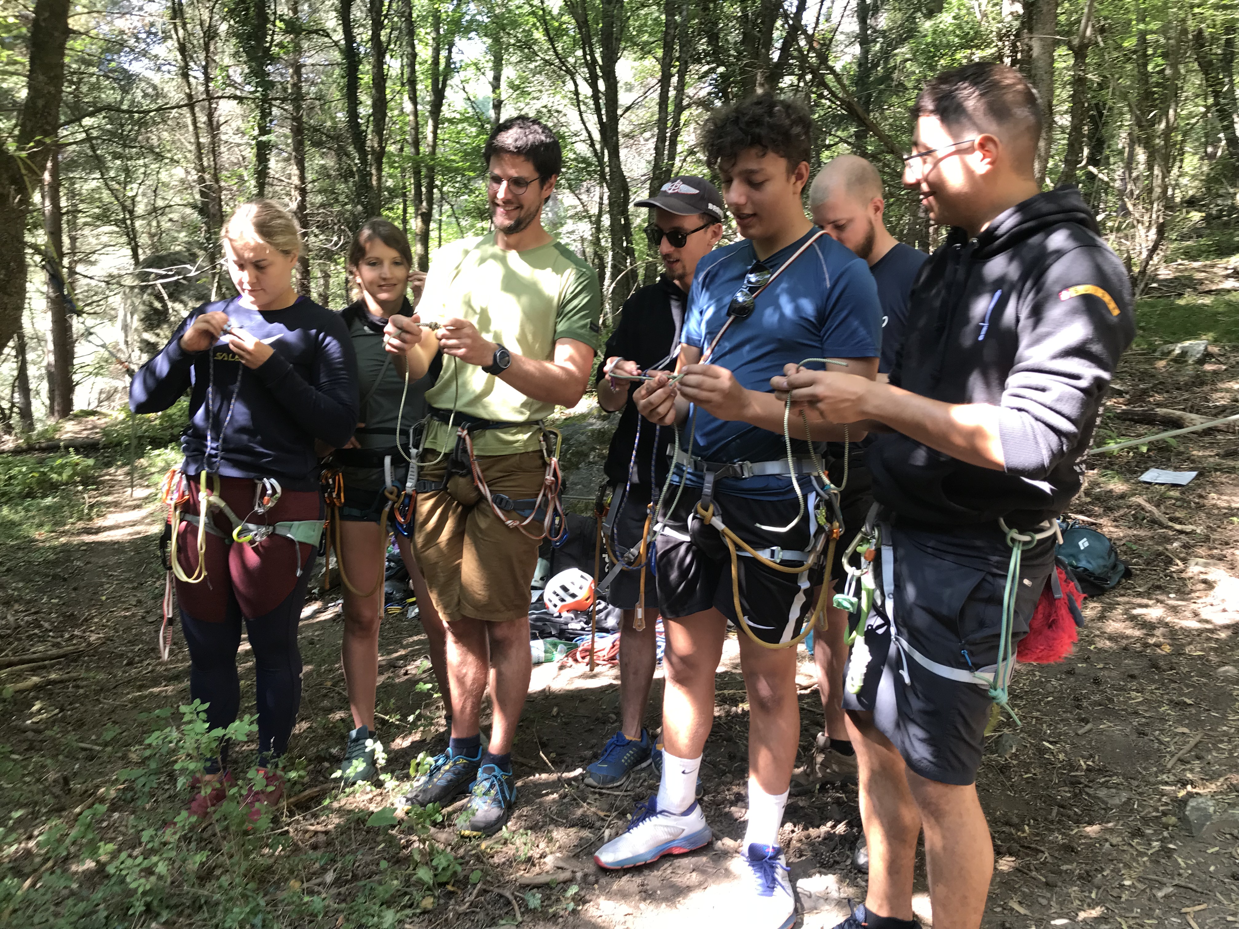 « Noeud n’est pas égal à noeud… une mini-formation en macramé en pleine forêt. Nos grands-mamans auraient plus facilement appris les noeuds que nous… »