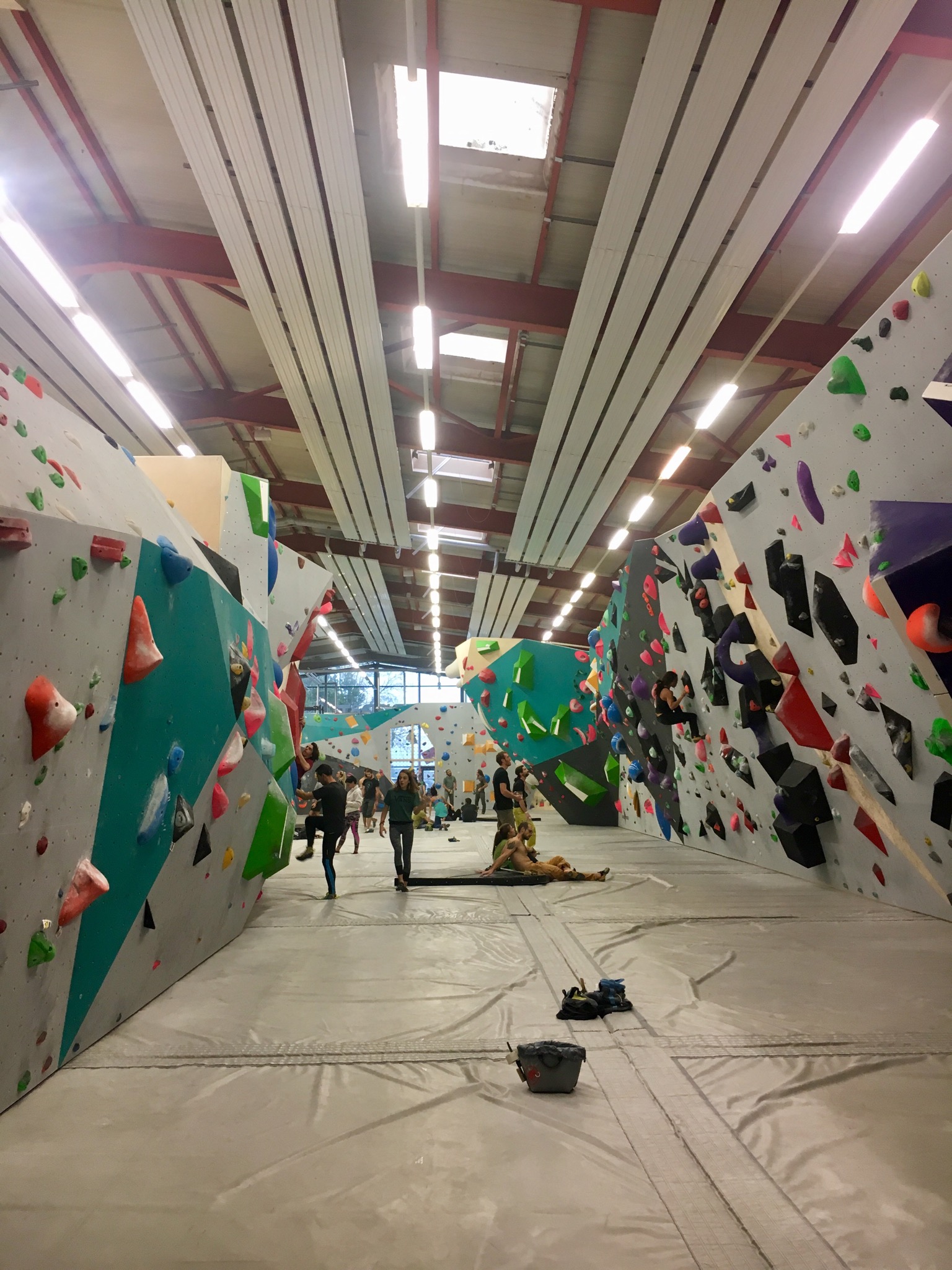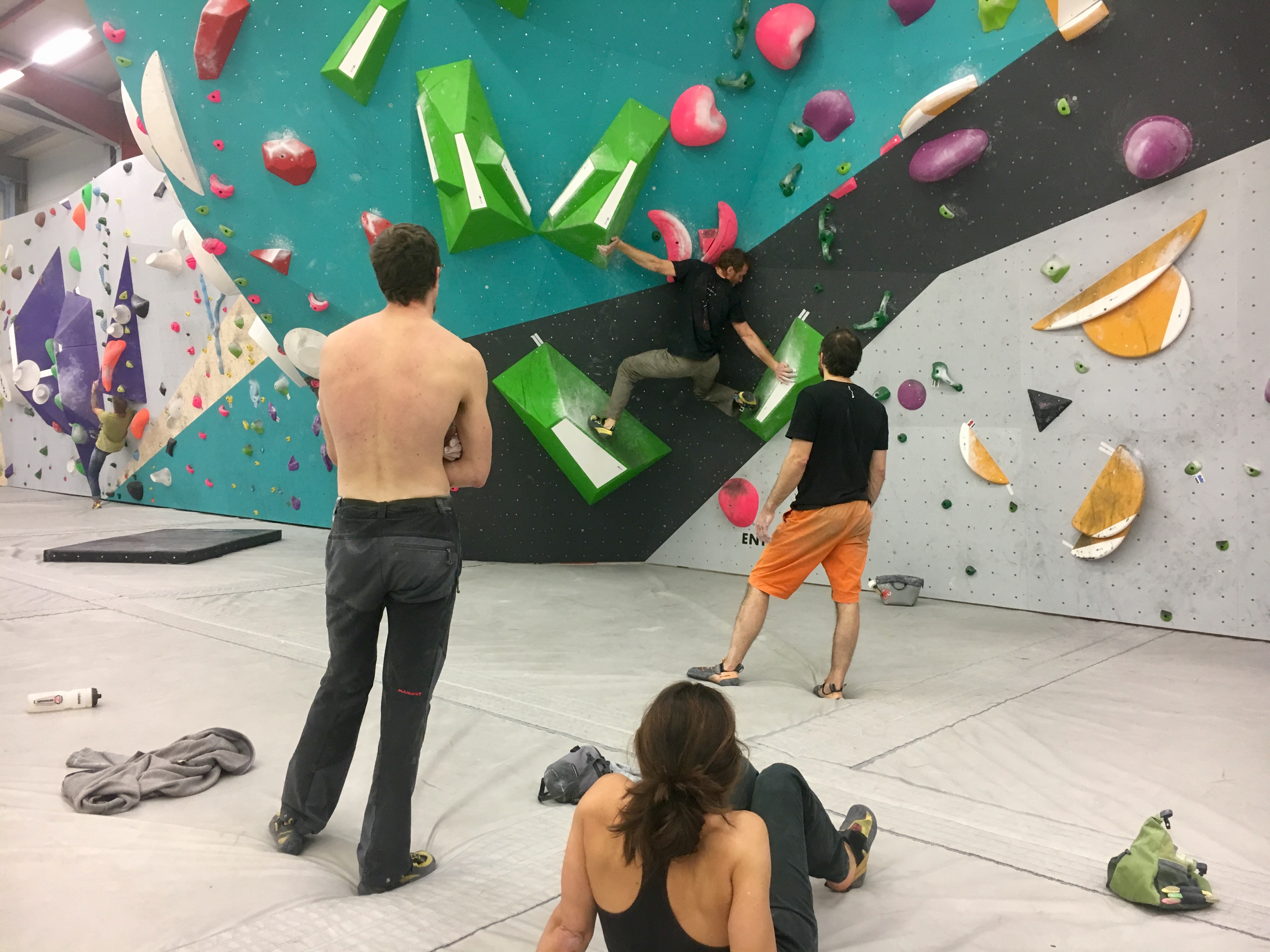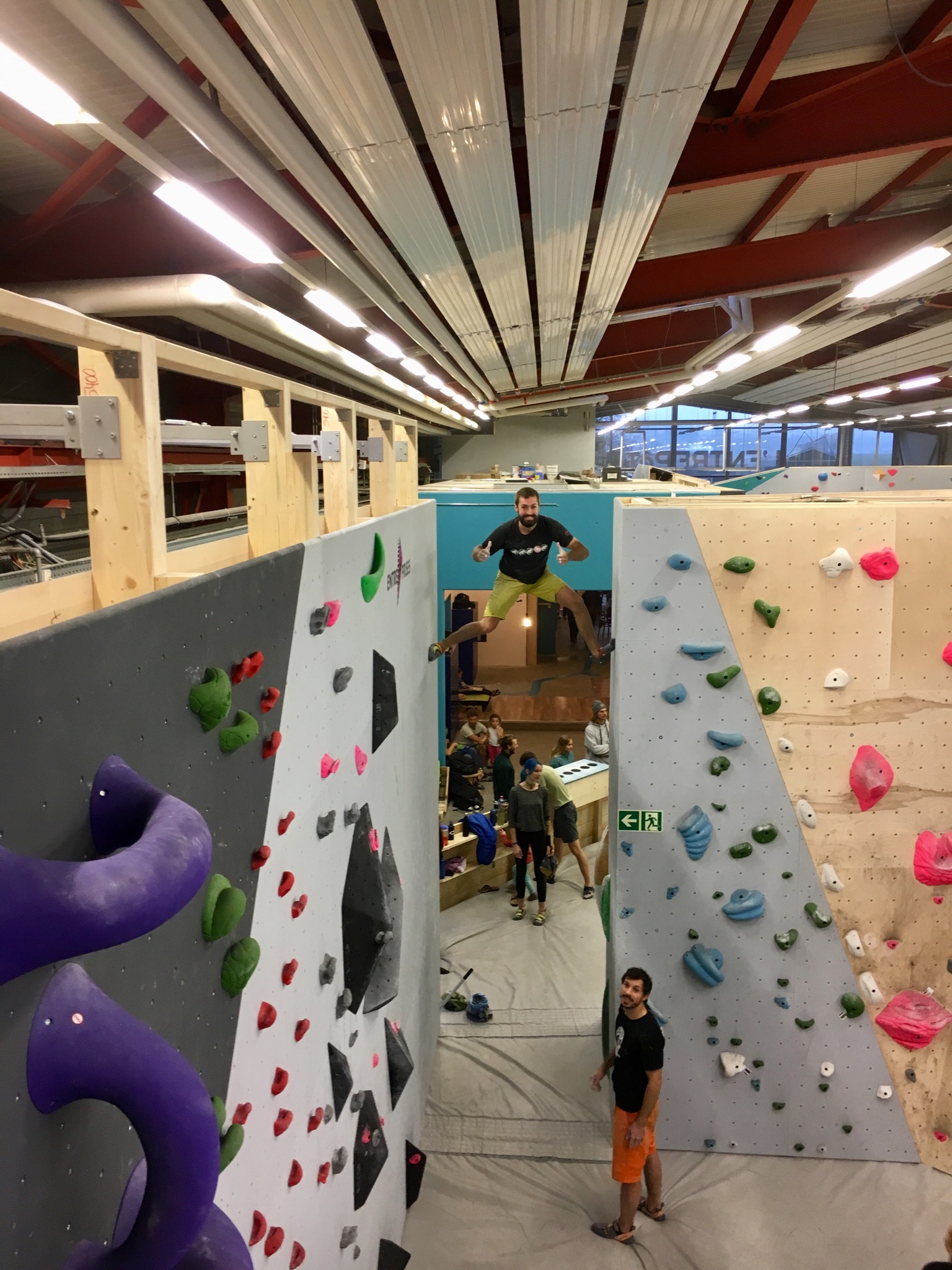 David, Didier, Thibaud, Julien, Rebecca, François, Stéphane et Celine sont allés grimper à l’Entrepôt, salle de bloc de Laniac à Bulle! Super journée de grimpe au chaud et au sec, dans une salle toute neuve (ça pique un peu les doigts). Accueil au top, bar avec petite restauration avec des produits locaux(nous on a adoré les pâtes avec sauce du chalet)! Salle de bloc avec un espace enfant et une salle de trampolines. On y reviendra avec plaisir!