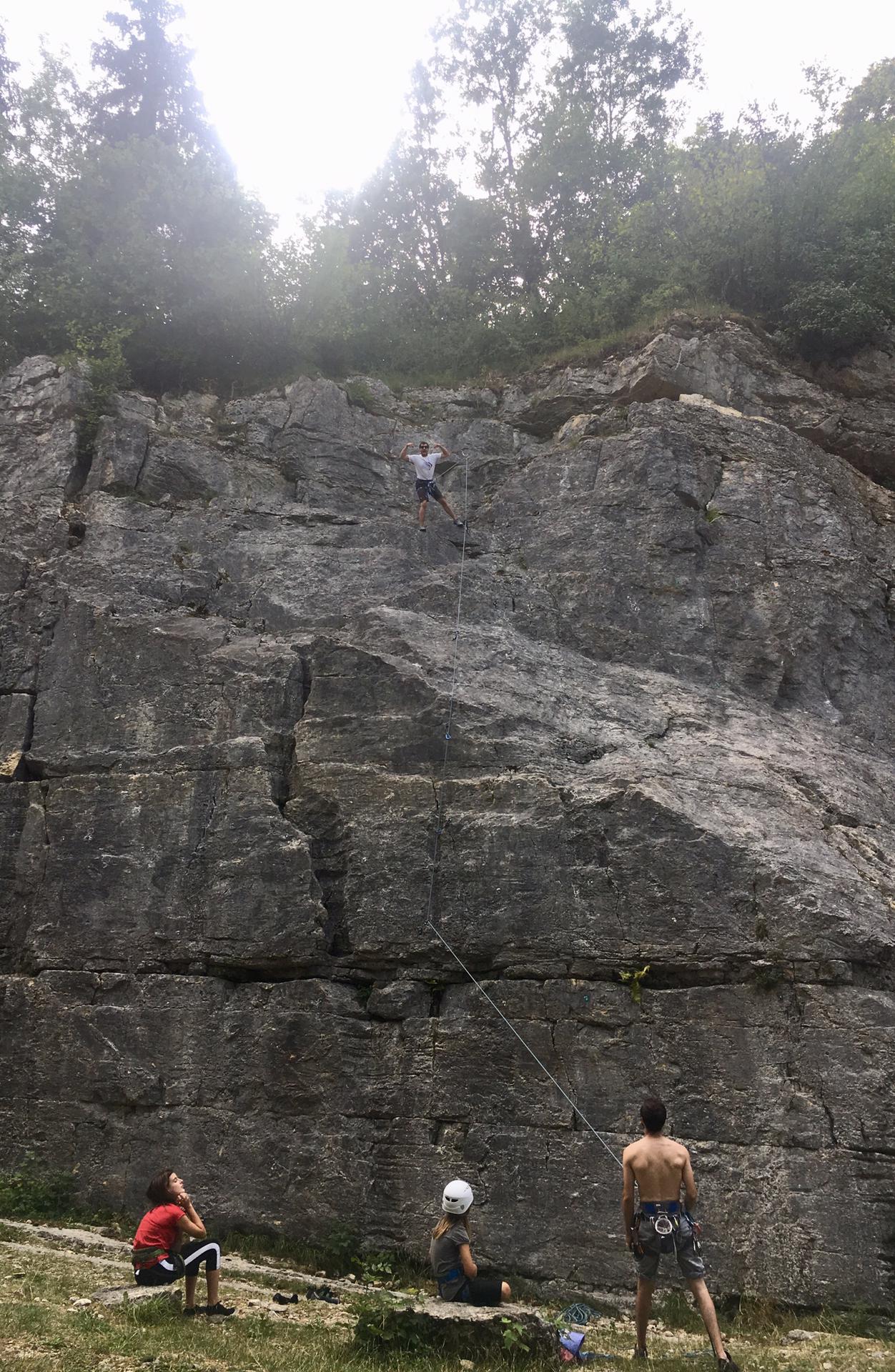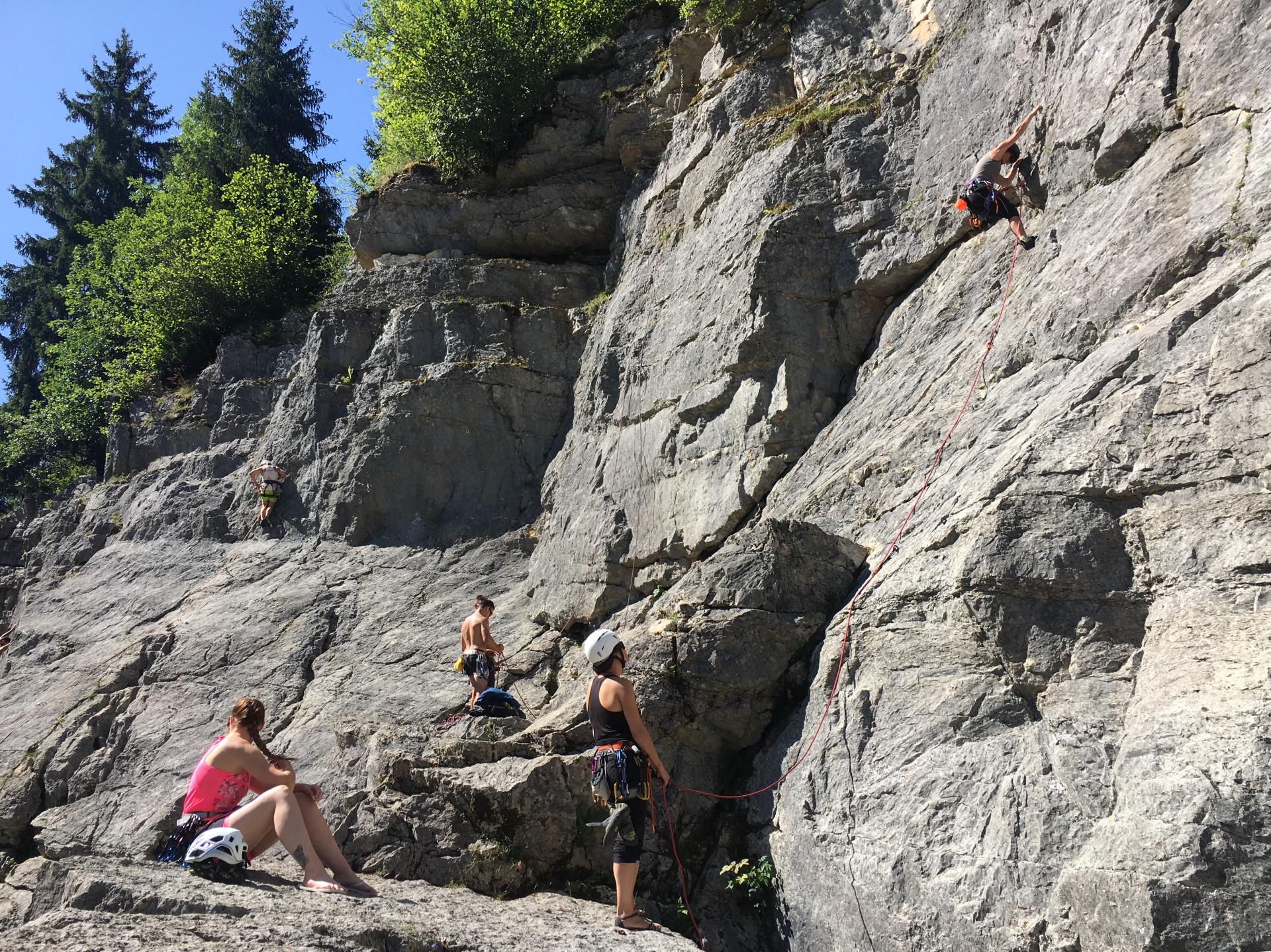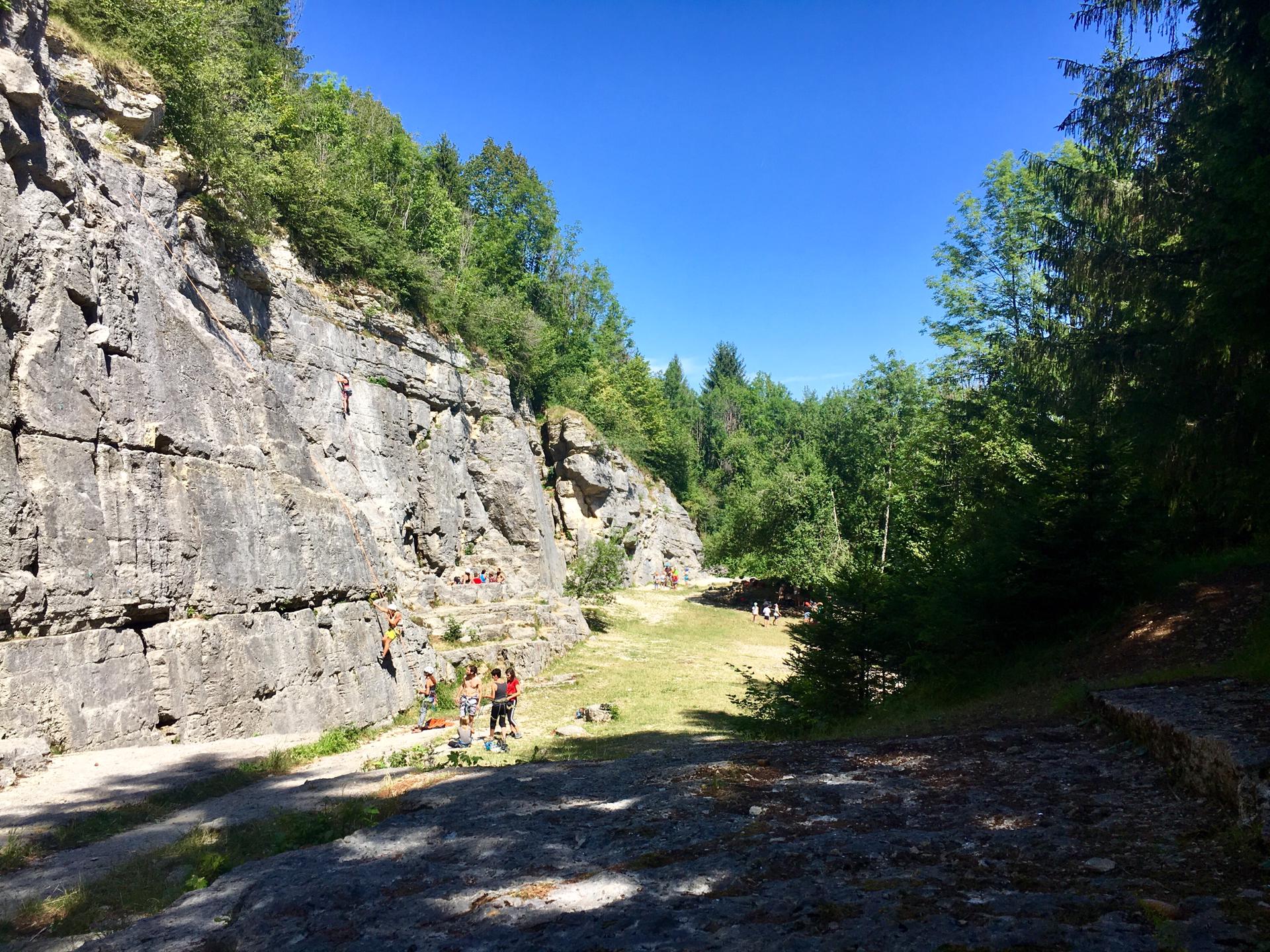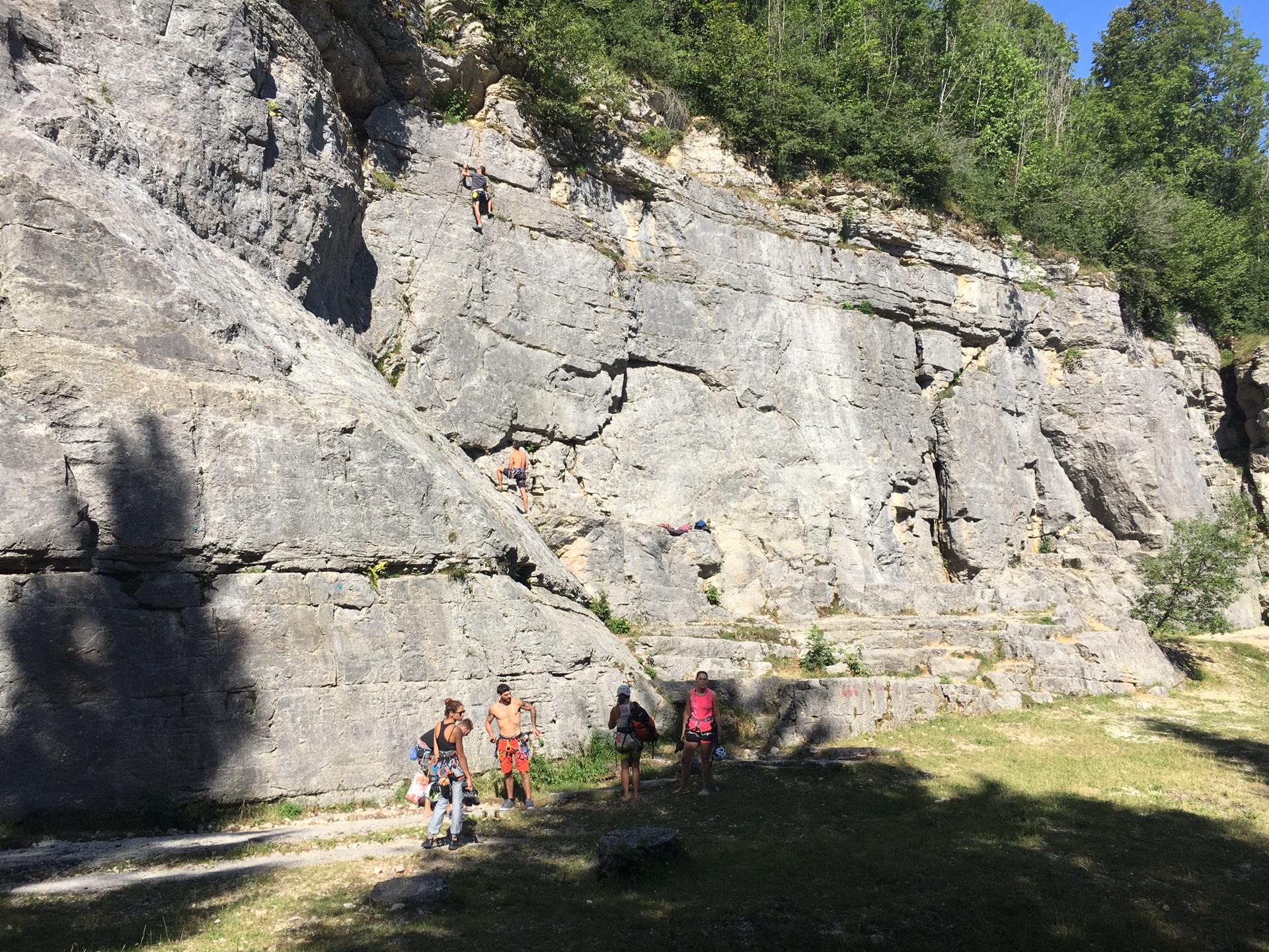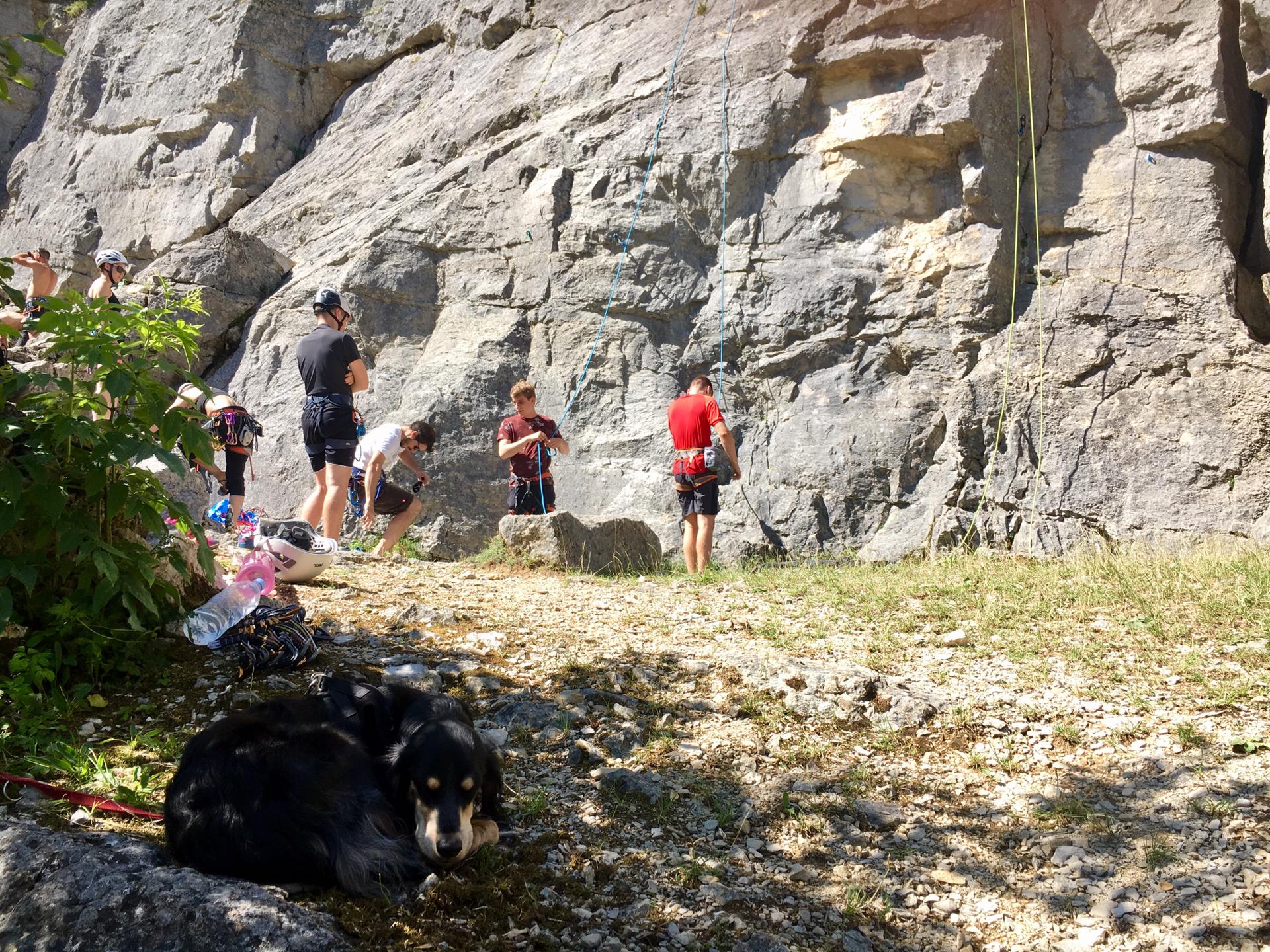 Sortie du 1er août sur le site de la Fauconnière à Pontarlier, en France. Une belle journée ensoleillée et un groupe motivé, de quoi passer une sortie agréable entre grimpeurs-euses. Des débutants aux avancés en passant par les enfants et le canidé, tout le monde a pu en profiter. La sortie résumée en quelques photos.
