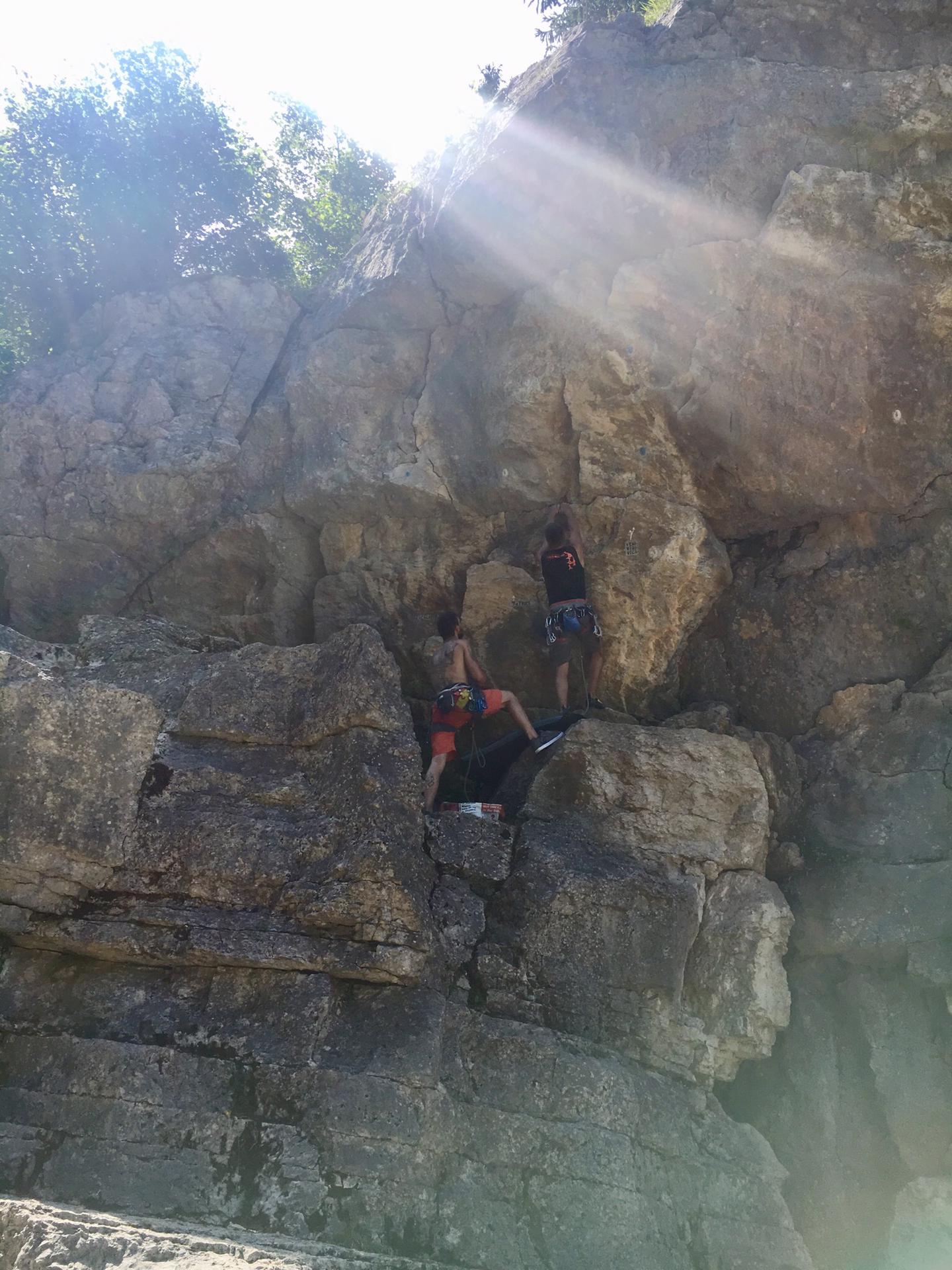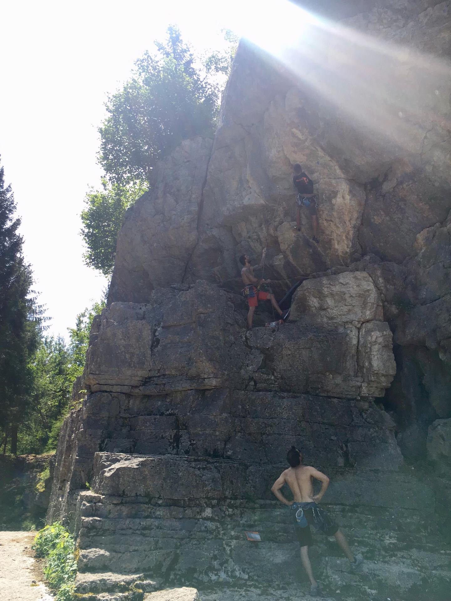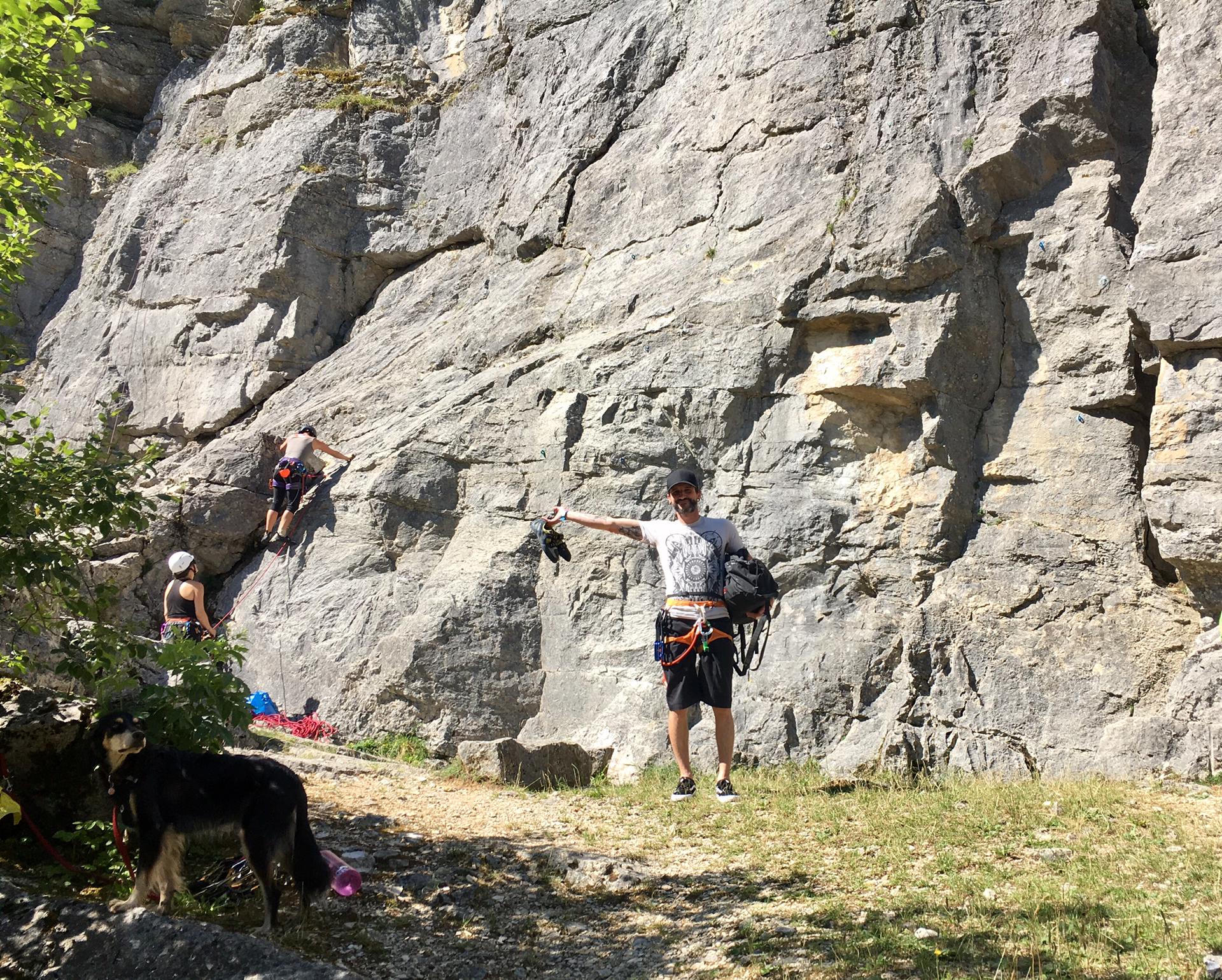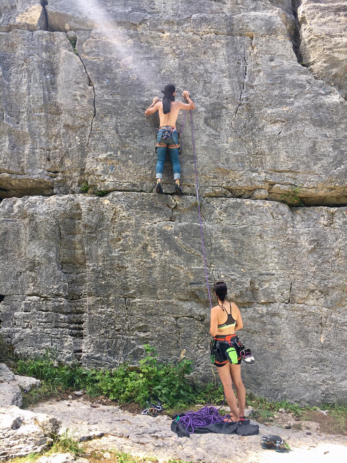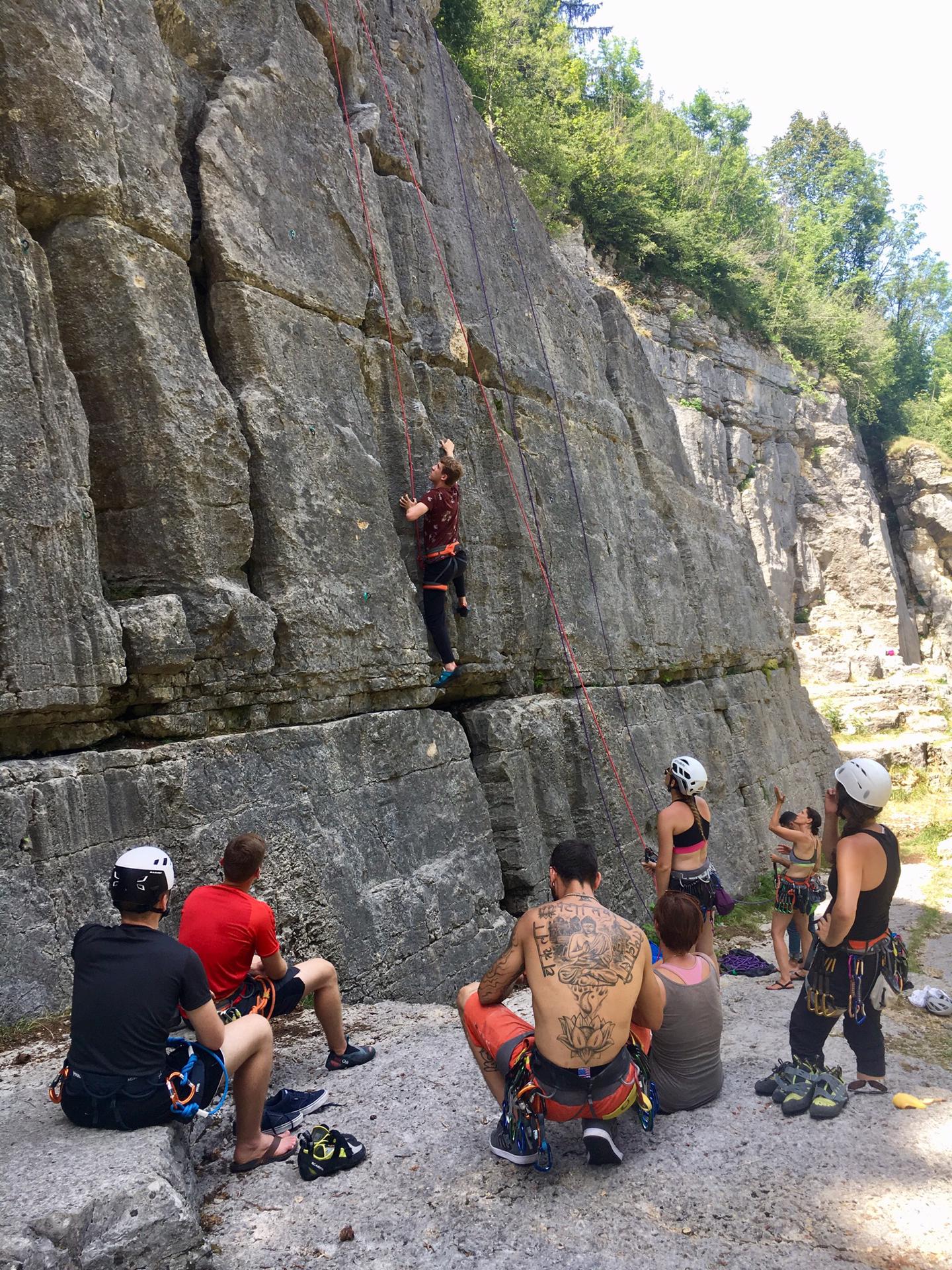 Sortie du 1er août sur le site de la Fauconnière à Pontarlier, en France. Une belle journée ensoleillée et un groupe motivé, de quoi passer une sortie agréable entre grimpeurs-euses. Des débutants aux avancés en passant par les enfants et le canidé, tout le monde a pu en profiter. La sortie résumée en quelques photos.