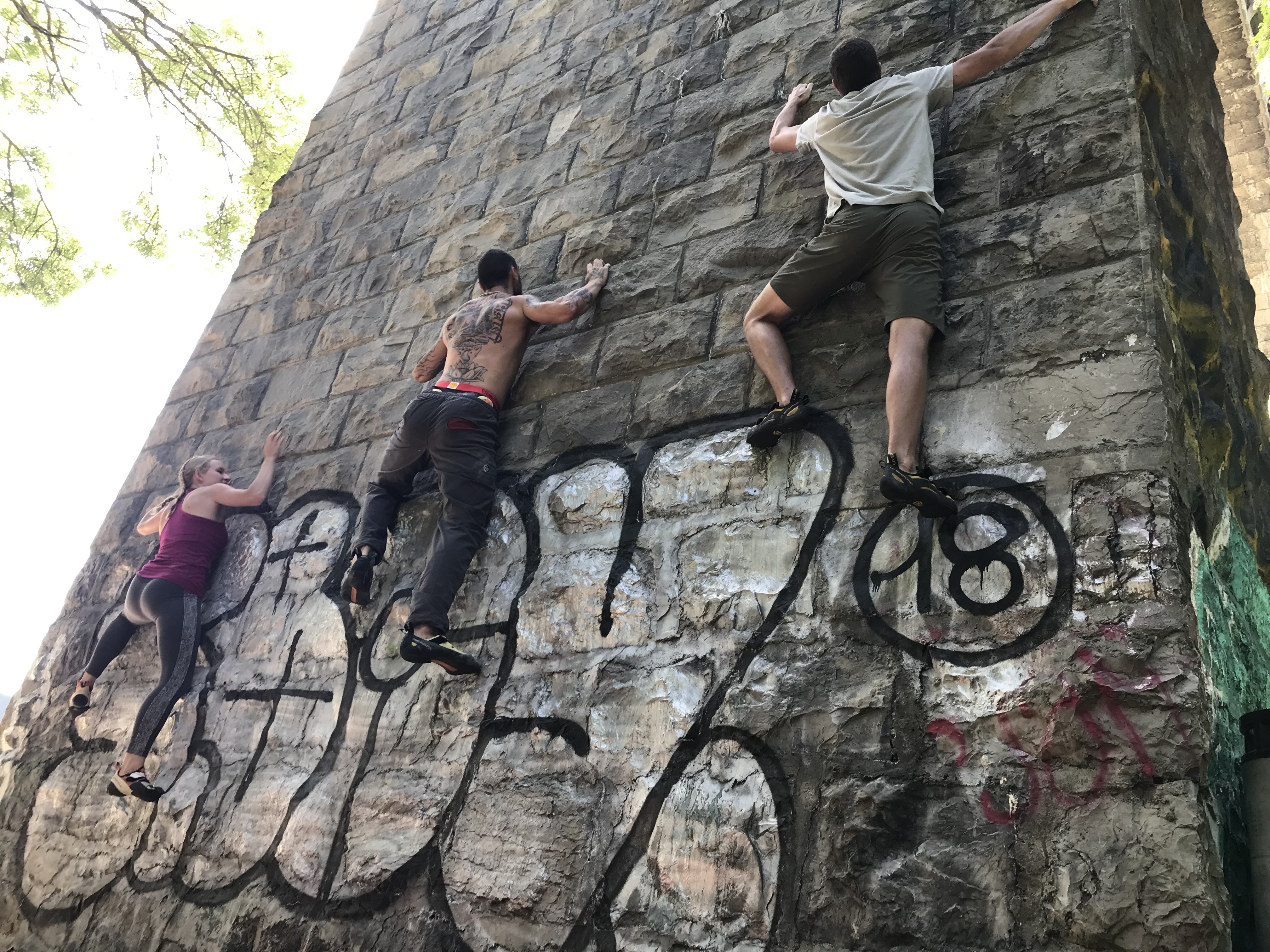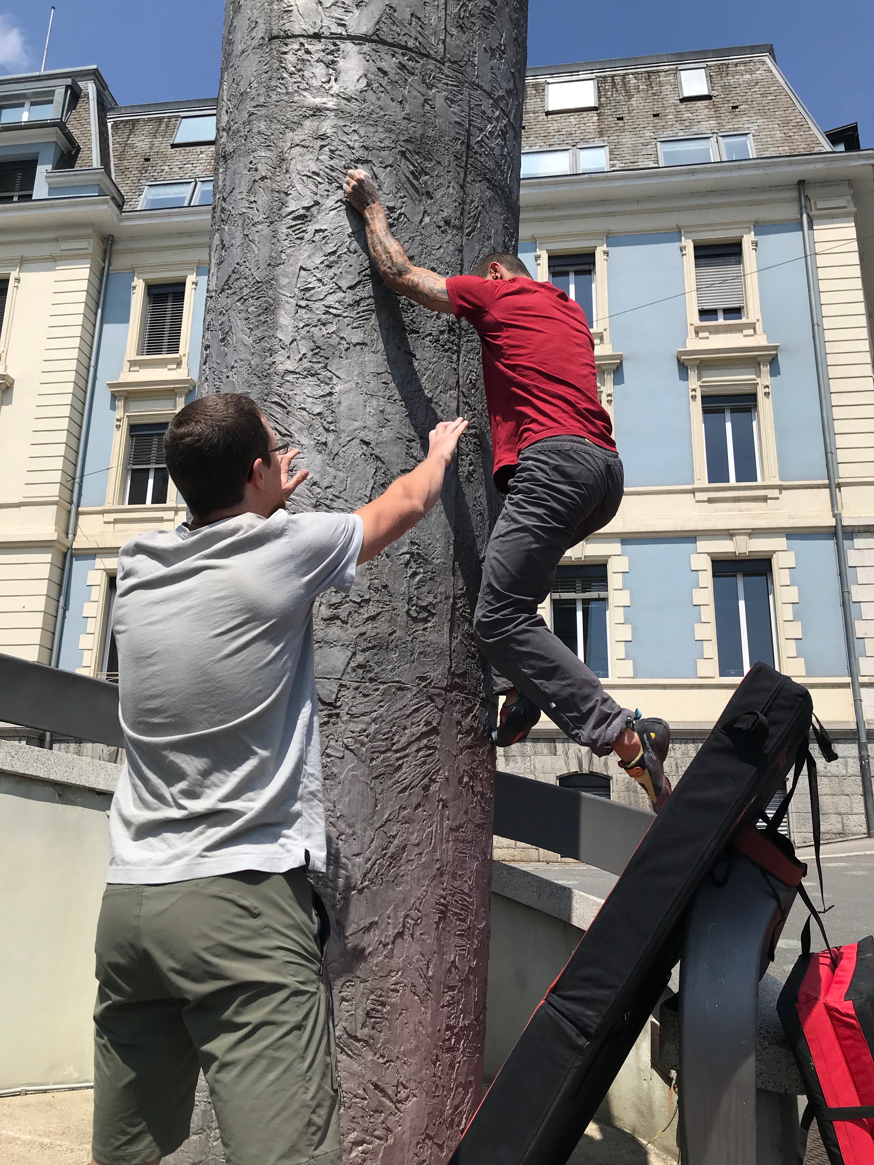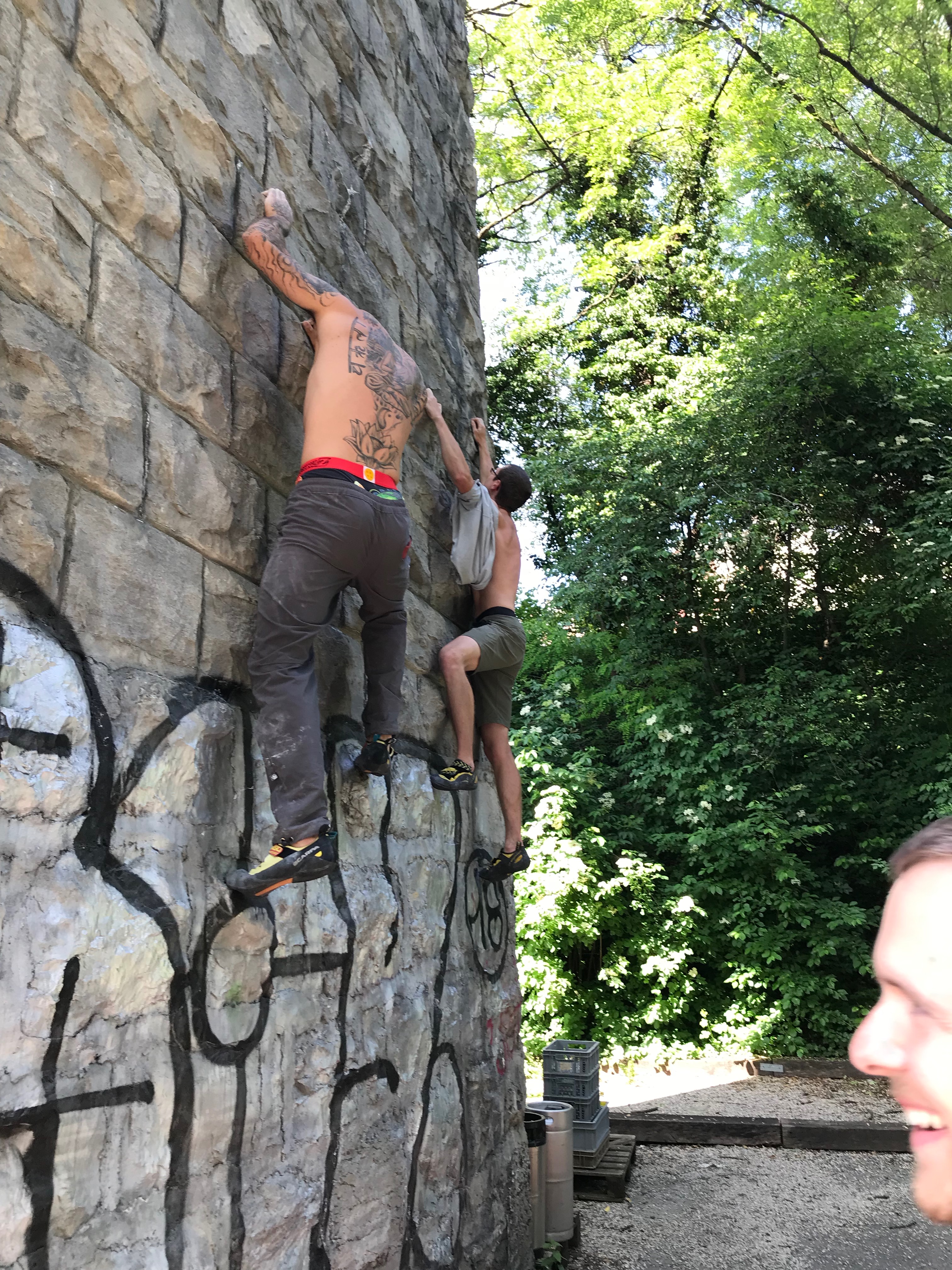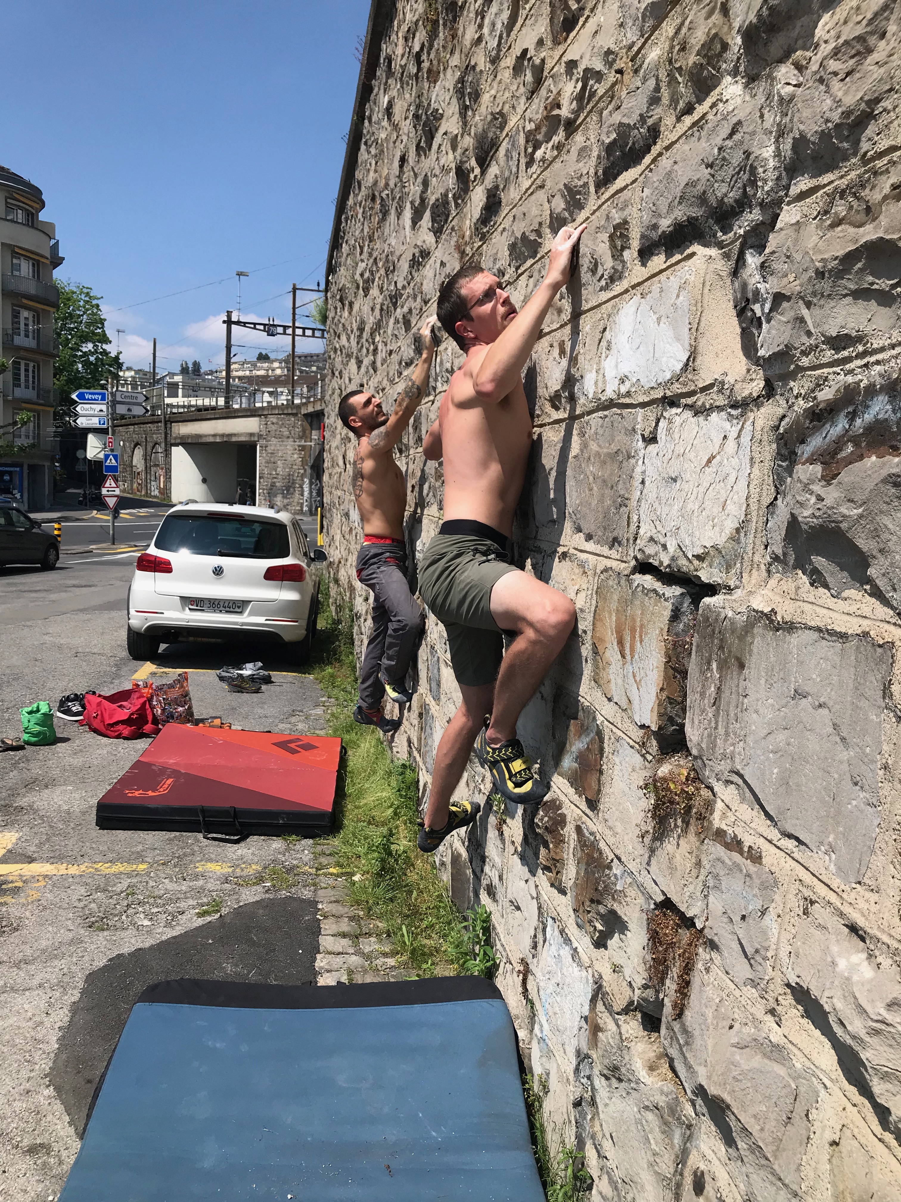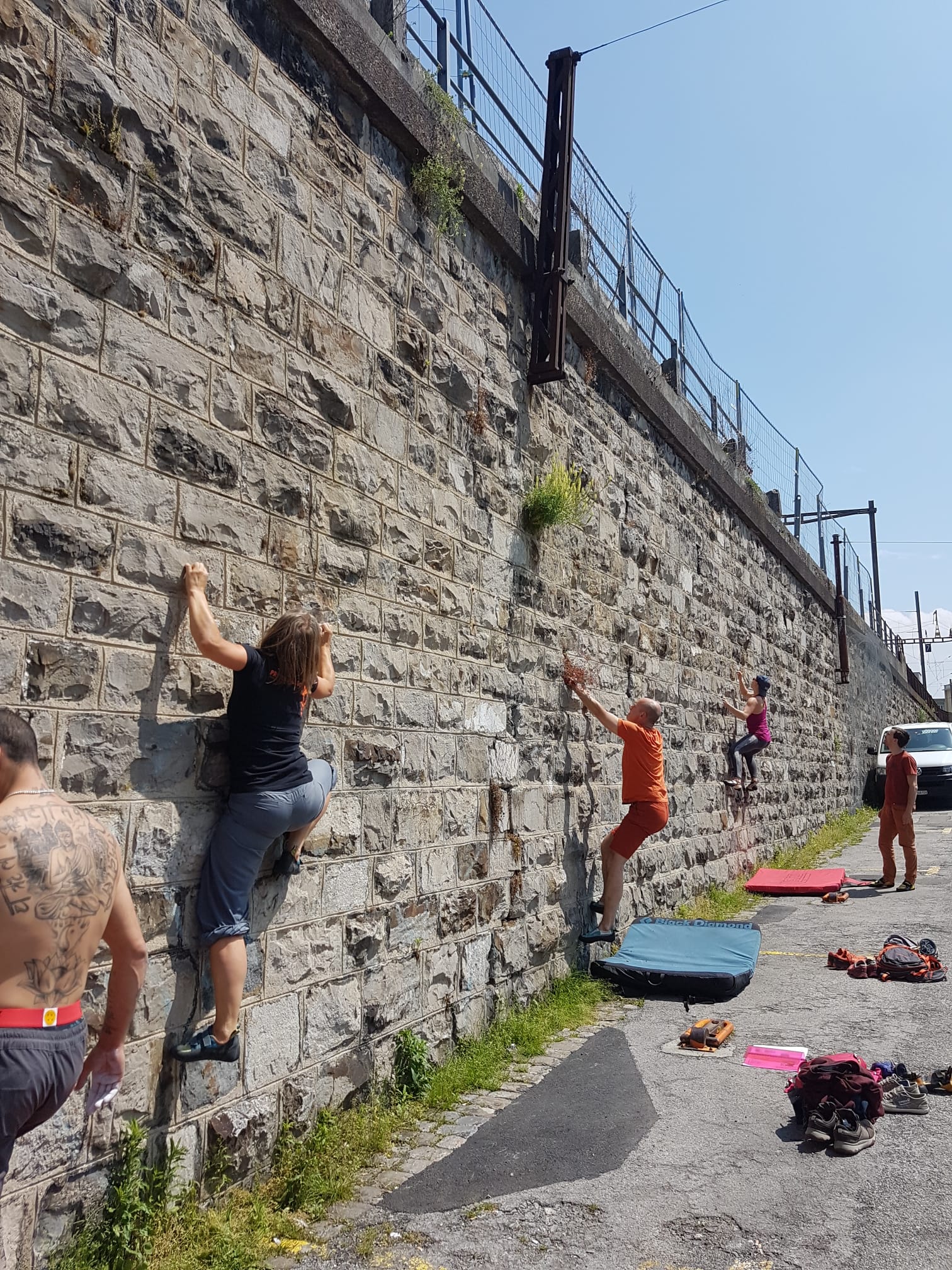 Enfin nous sommes autorisés à reprendre nos activités avec l'assoss'... Etant donné que plusieurs falaises sont toujours fermées au public, la sortie UrbanClimb tombe à pic. A six (Romain, tu nous as mis dans l'illégalité ;) nous testons deux spots du topo "Grimpe Urbaine à Lausanne". Après deux mois de pause, les avant-bras gonflent rapidement et les prises nous paraissent très petites, mais l'ambiance est (comme d'habitude) joyeuse et la motivation au top...
