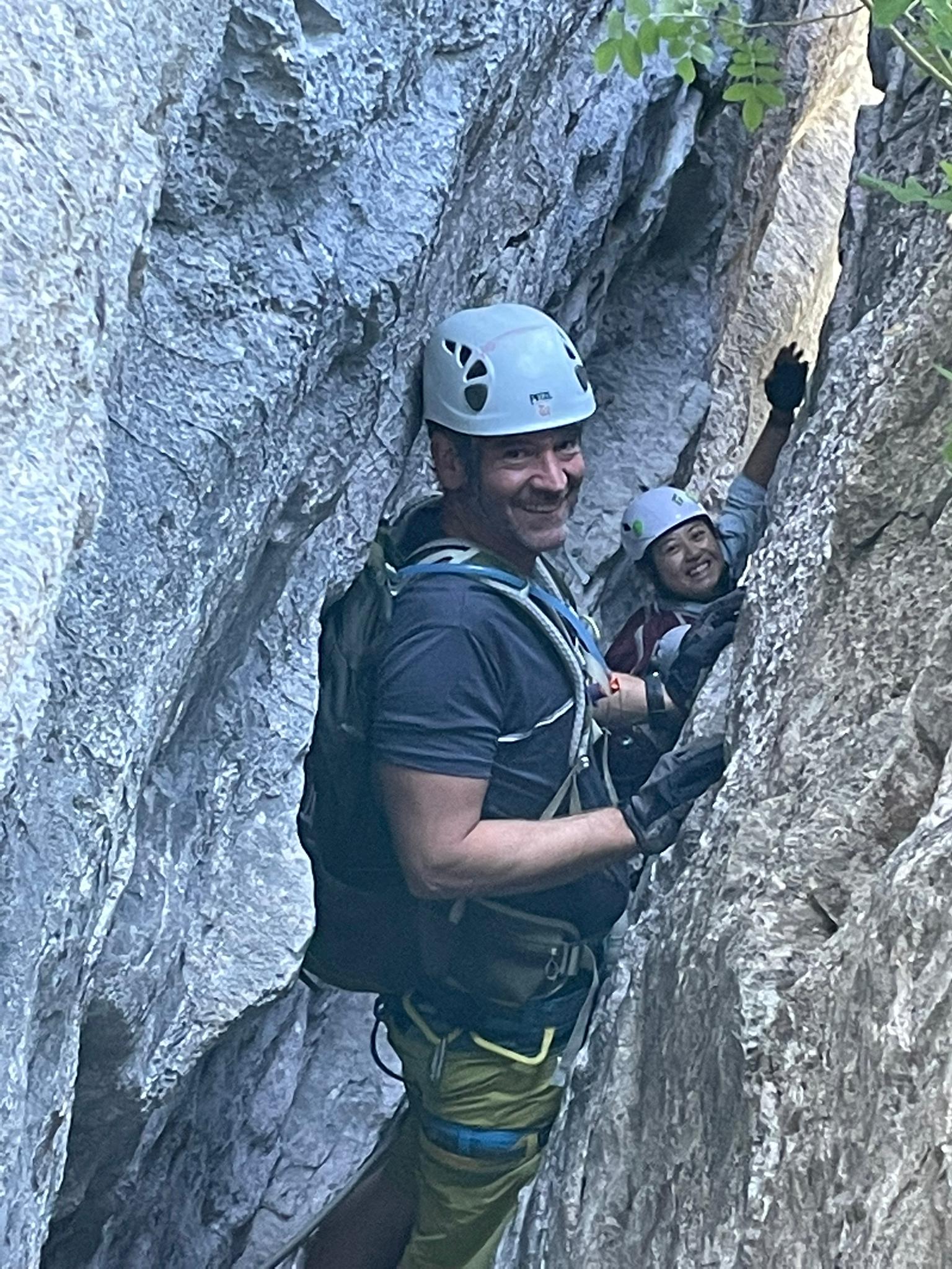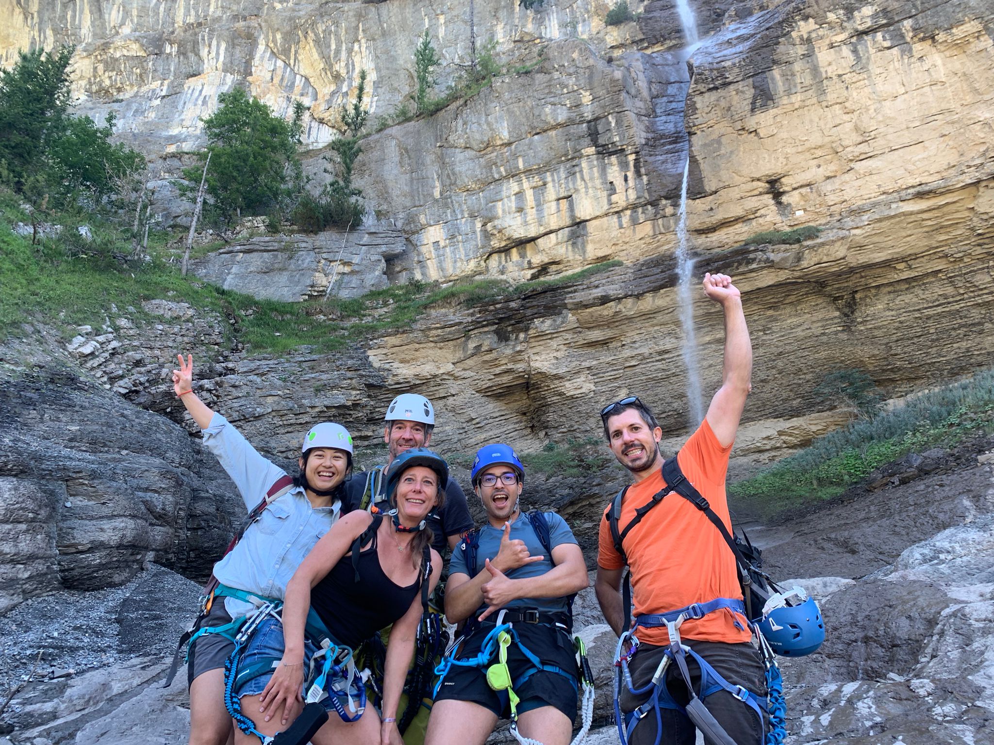 Une belle journée pour faire la via ferata de la cascade du Dar suivie d’un repos bien mérité devant les films du festival international du film alpin.