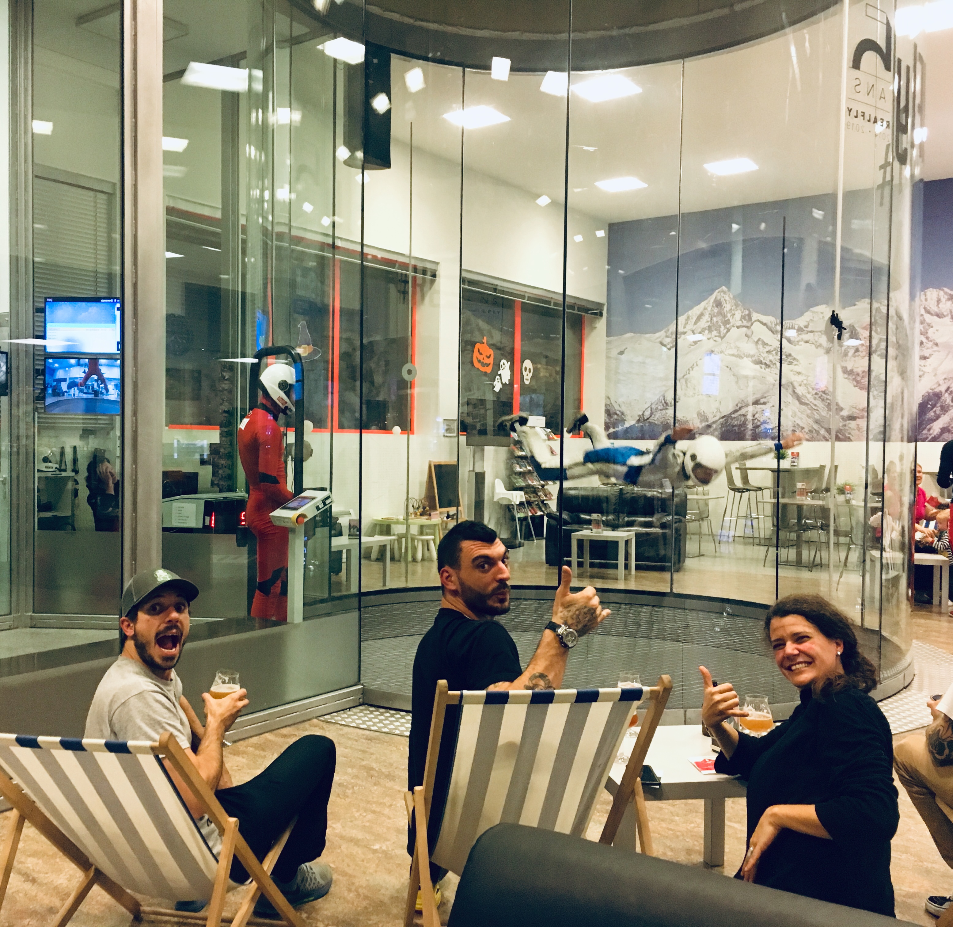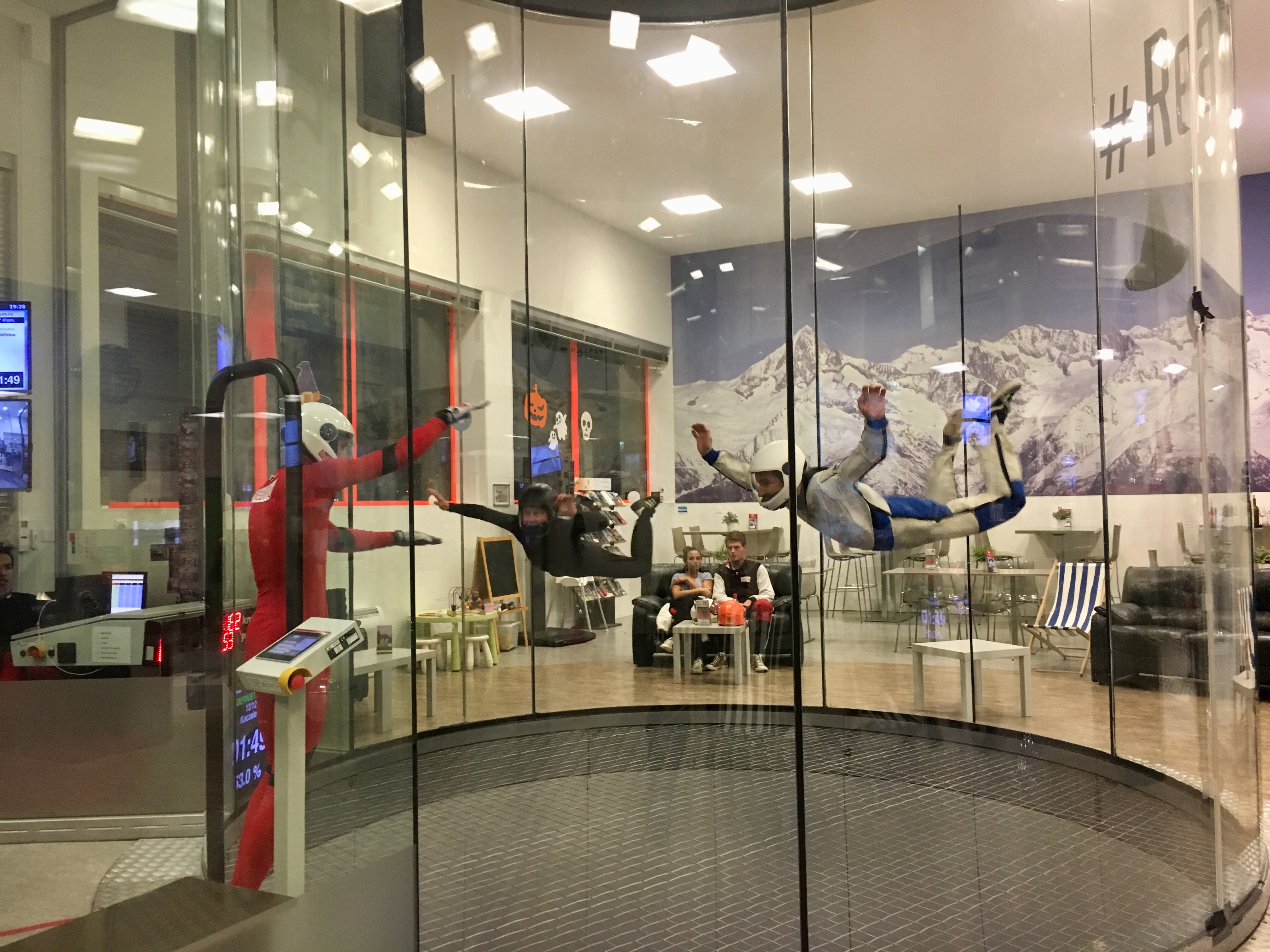 Le temps de quelques minutes des membres de prends-moi sec se sont envoyés en l’air! Claire leur a fait partager sa passion pour le saut en chute libre grâce au simulateur de Realfly à Sion. Une journée chargée en émotions et en sensations fortes, toujours dans la bonne humeur, qui se termine autour d’un bon repas à la « Vida Loca »! Un grand merci à Claire pour cette découverte.